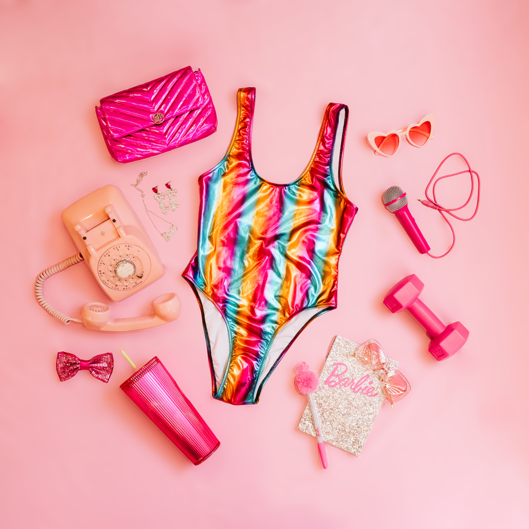 Nailing the Barbiecore aesthetic doesn’t need to be pricey, but it should be fun. Whether you’re properly shopping or just window shopping, channeling your inner Barbie-girl vibe is a must. 👙 For cheap and easy props, be sure to make a mall stop at Claire’s (#throwback!), Urban Outfitters, or hit up a thrift store for hot pink accessories like necklaces, purses, bows, and even props or party decorations! 👛