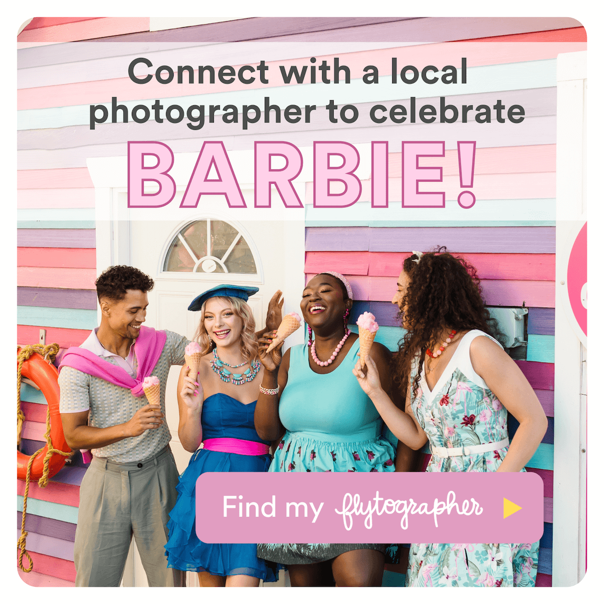 We hope you and your Barbie besties have some summertime fun and that we’ve inspired you to go out and celebrate! (Happy bonus: you’re a few months ahead of the gate when it comes to your Halloween costume!). Capture memories of everyone in the frame by booking a Flytographer for a Barbie photoshoot.