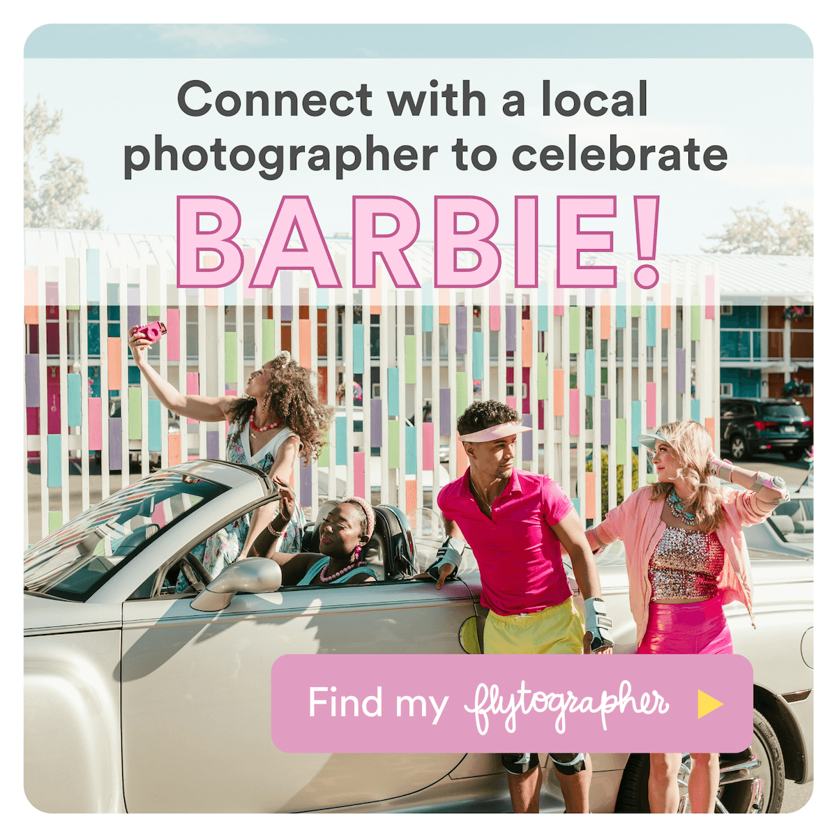 One of the best parts about being best friends is letting loose and having a blast with people who can similarly let their hair down for a good time, anytime! 👯 Finding a reason to celebrate is half the fun (like going to see the new Greta Gerwig-directed Barbie movie!), and giiiiirl, do we have a summer day/night plan to share with you today. Here at Flytographer, we easily connect people with trusted photographers for fun photo shoots and have captured over three million memories worldwide. Today, we want to take you behind the scenes of a super-fun, Barbie photoshoot and offer our photographer-approved tips on how to capture the magic with your bestie/besties! 💗
