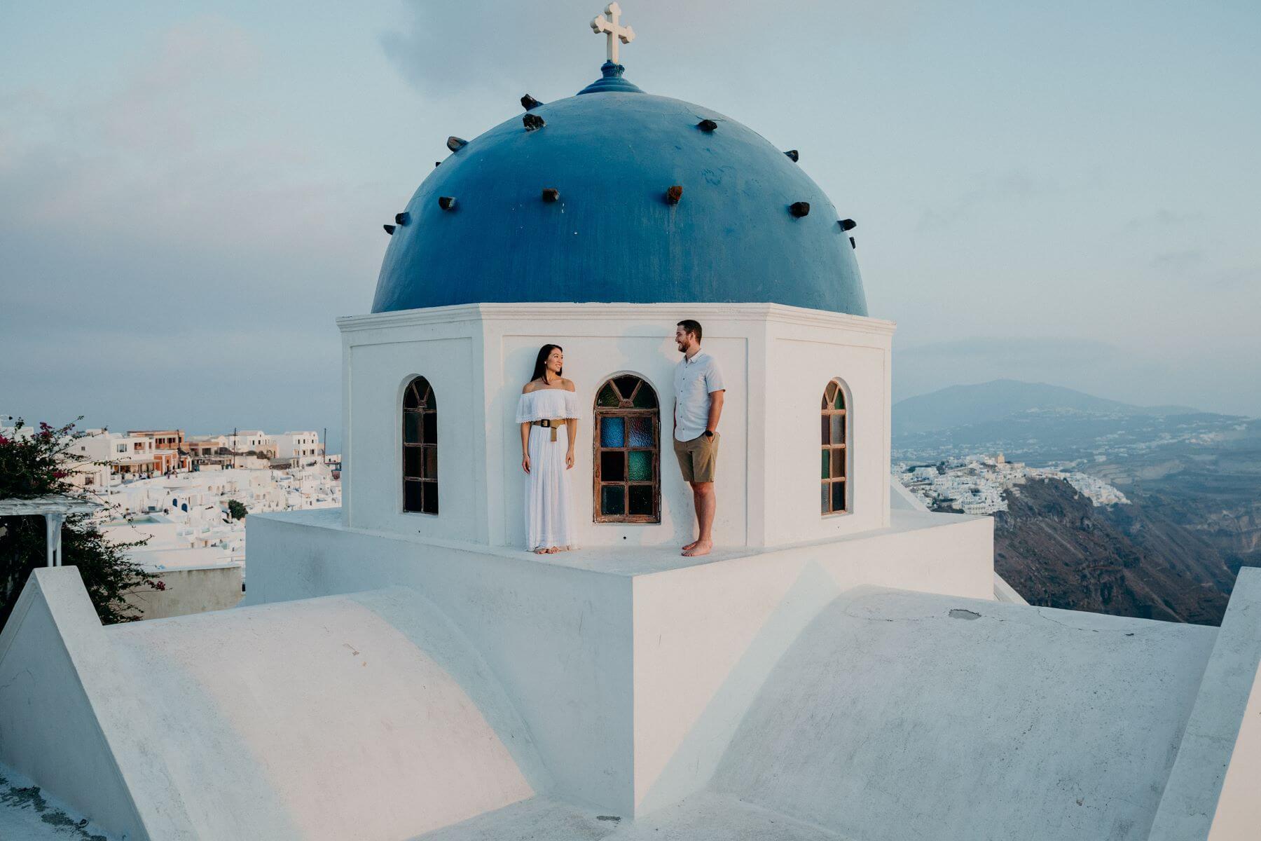 Photo: Spyros in Santorini for Flytographer. Rebecca and partner capture memories of their trip at Imerovigli Village in Santorini on a honeymoon photoshoot.