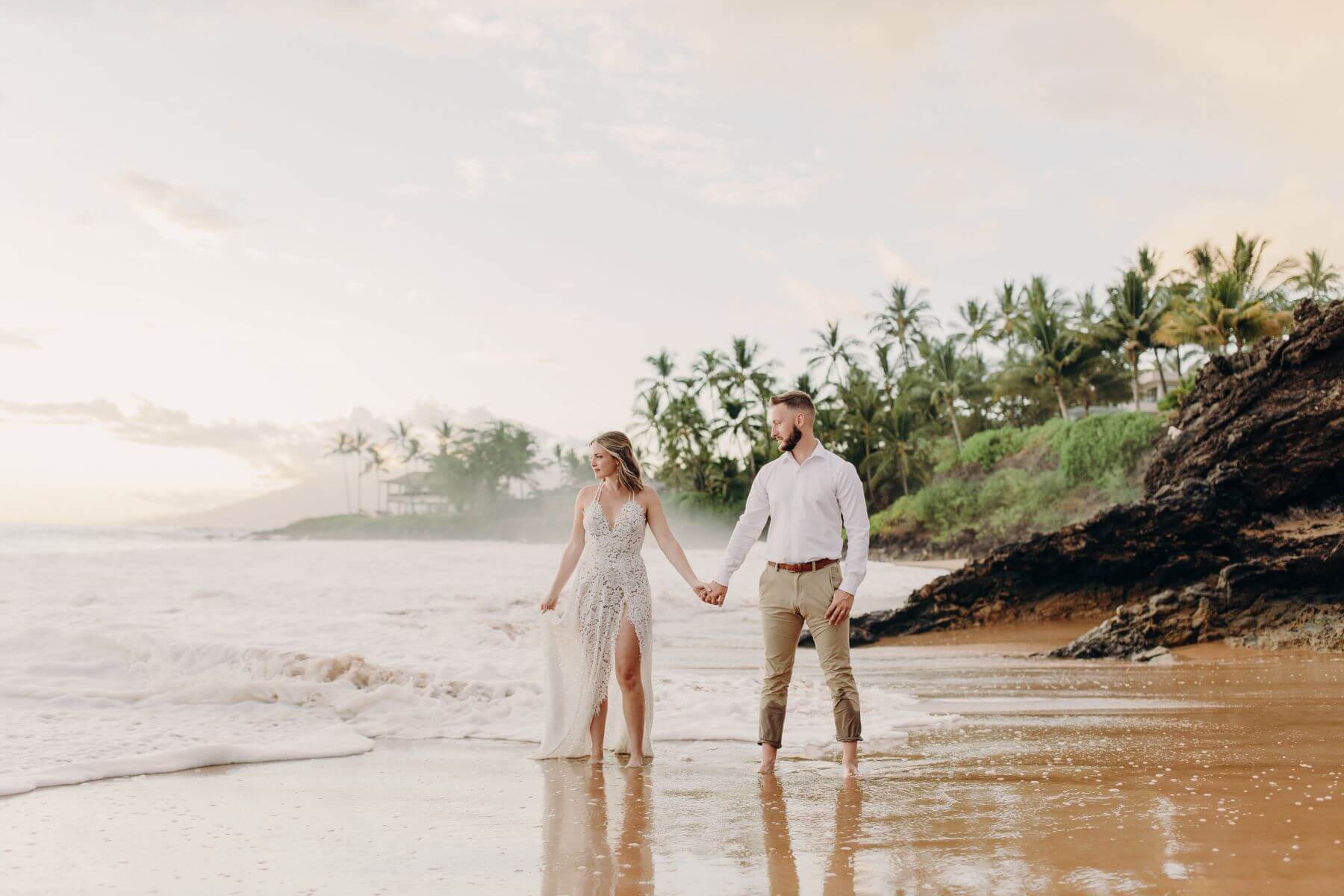 Ohhhh, Maui! With beautiful beaches, swaying palm trees, sunny skies, warm ocean breezes and much more, Maui is an award-winning island for a plenitude of reasons. 🏝 Whether you envision your wedding experience barefoot on a sandy beach, flanked by rocks and ocean waves or beachfront on the grounds of one of Maui’s stunning resort properties, there are too many photo-worthy backdrops for just your ceremony alone! What about taking the time to capture photos of you in your wedding attire pre-ceremony or maybe a honeymoon photoshoot post-wedding with a totally different (but equally as magical) backdrop? Take advantage of the variety and constant beauty Hawaii has to offer and the talent of one of our incredible Maui Flytographers!