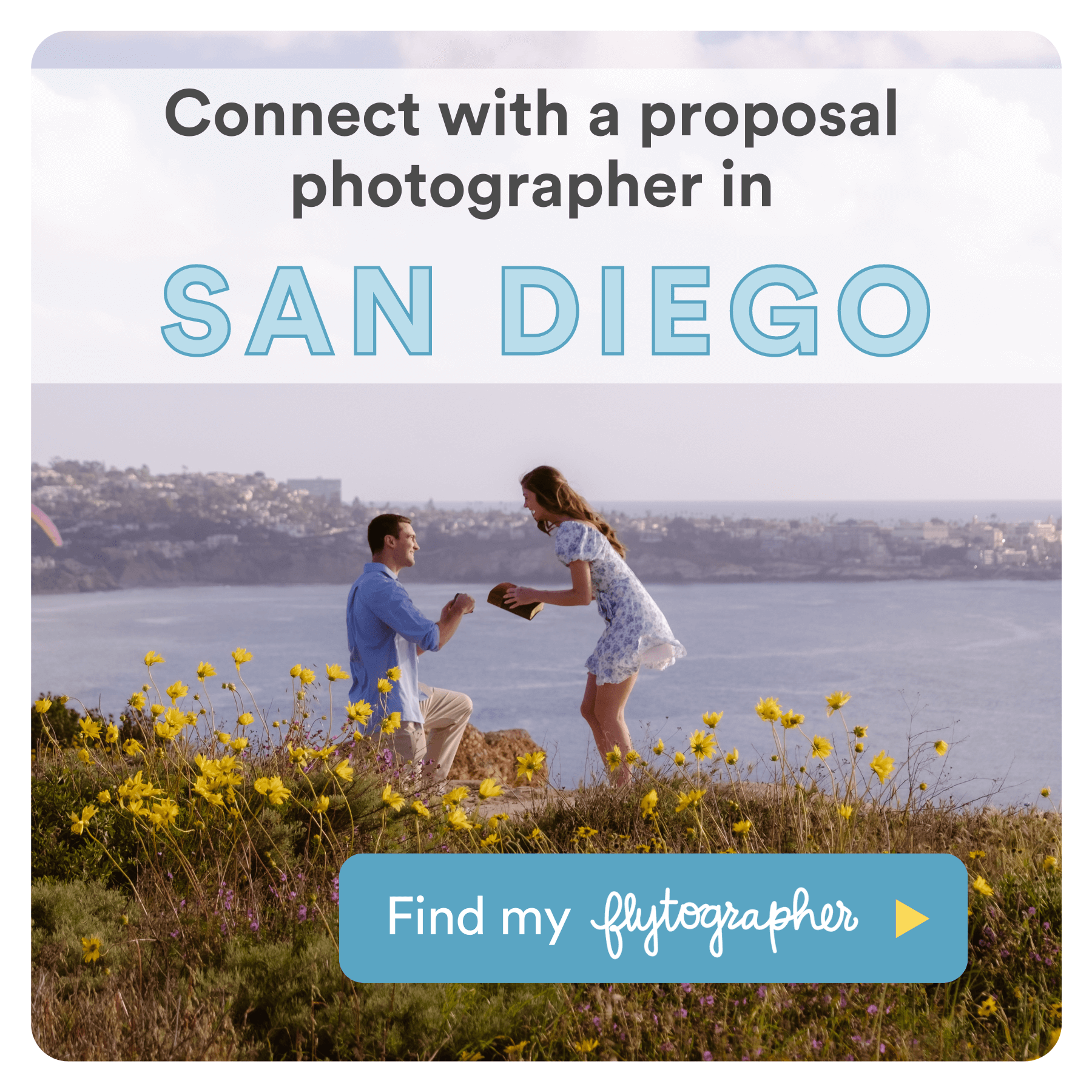 We easily connect people with trusted photographers for fun photo shoots and have captured over six million memories worldwide. The magic of Flytographer is both the experience and the photos. Explore the city with a fun, talented photographer and get wall-worthy photos to relive your trip, forever. San Diego proposal photographers are experienced at capturing that magical moment and place so that you can focus on the romance. 💍