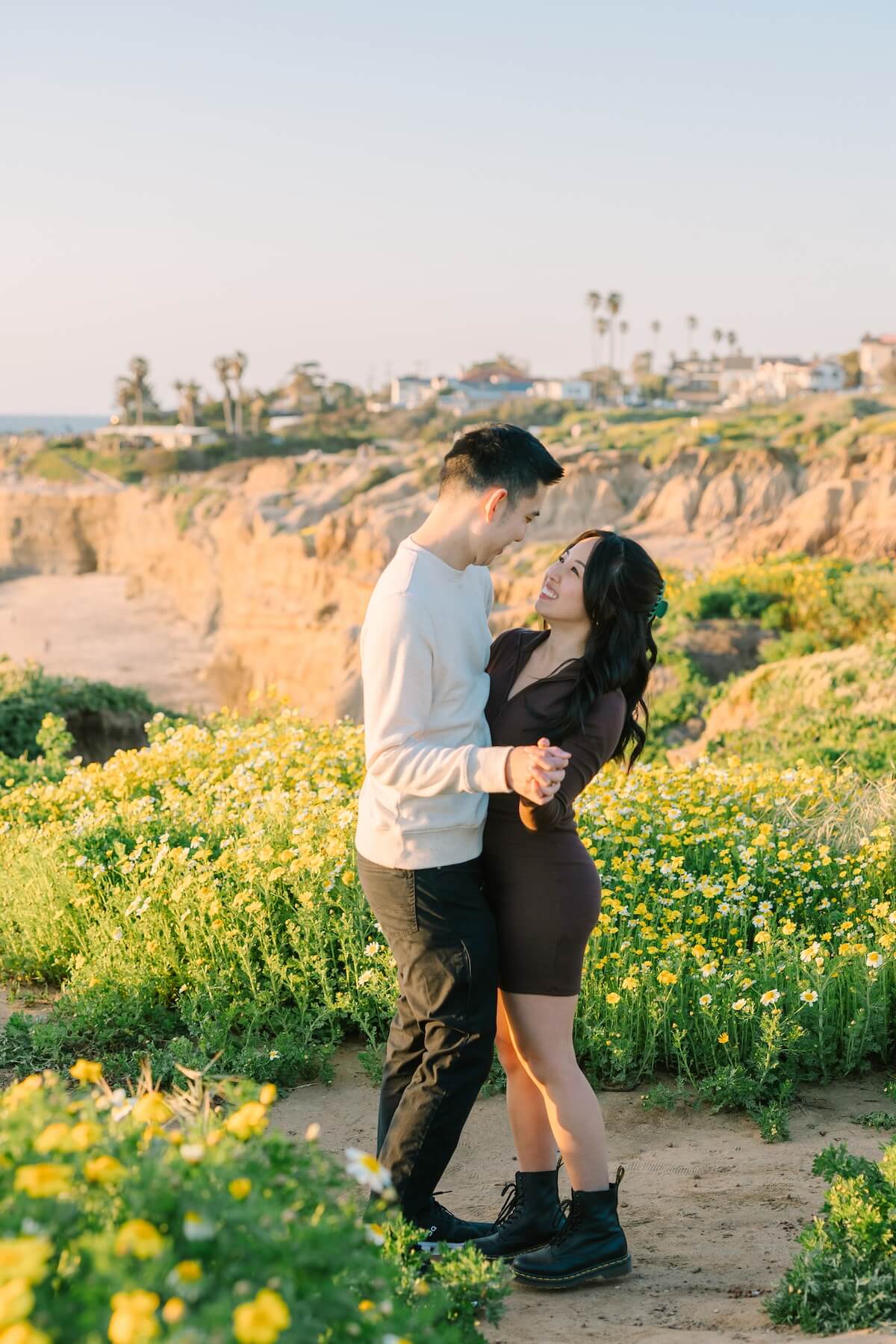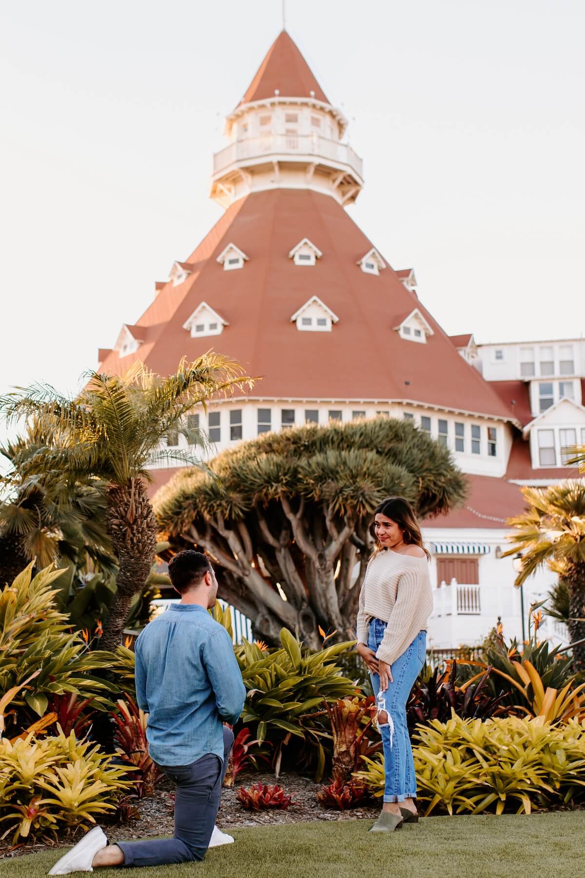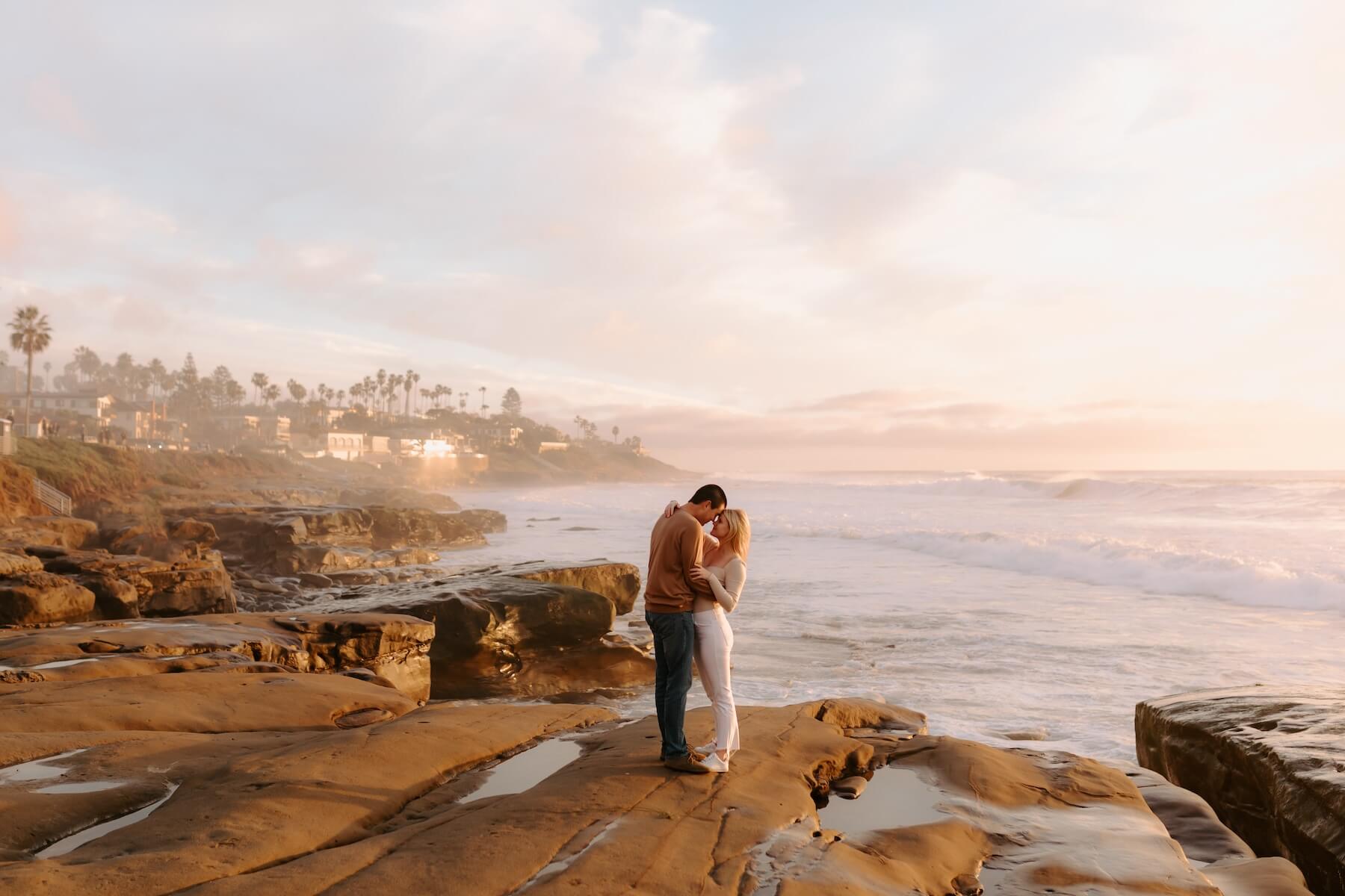 Since San Diego is such a hub for both tourists and locals, all the major photo spots are usually crowded during the day. This is why the best time of day for proposal photos in San Diego is sunrise: right after the sun comes up, with the best light conditions, fewer or no people in the background of your photos, and the city all to yourself!