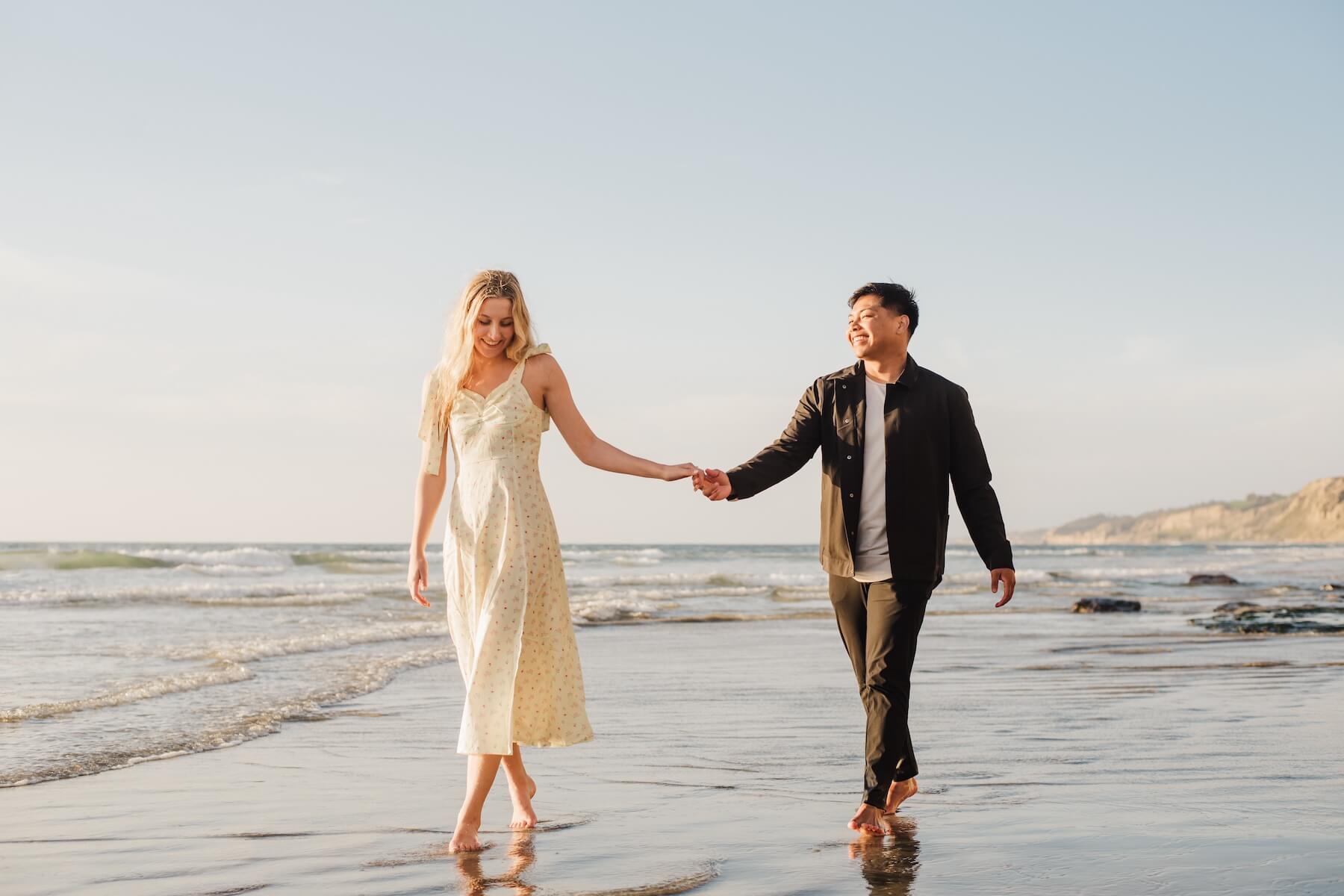 If you’re planning a surprise proposal photography session and want to look coastal chic, suggest a stroll before or after your dinner reservation. That way, you’ll be all dressed up—shoes optional! 🩴 - Denim casual: