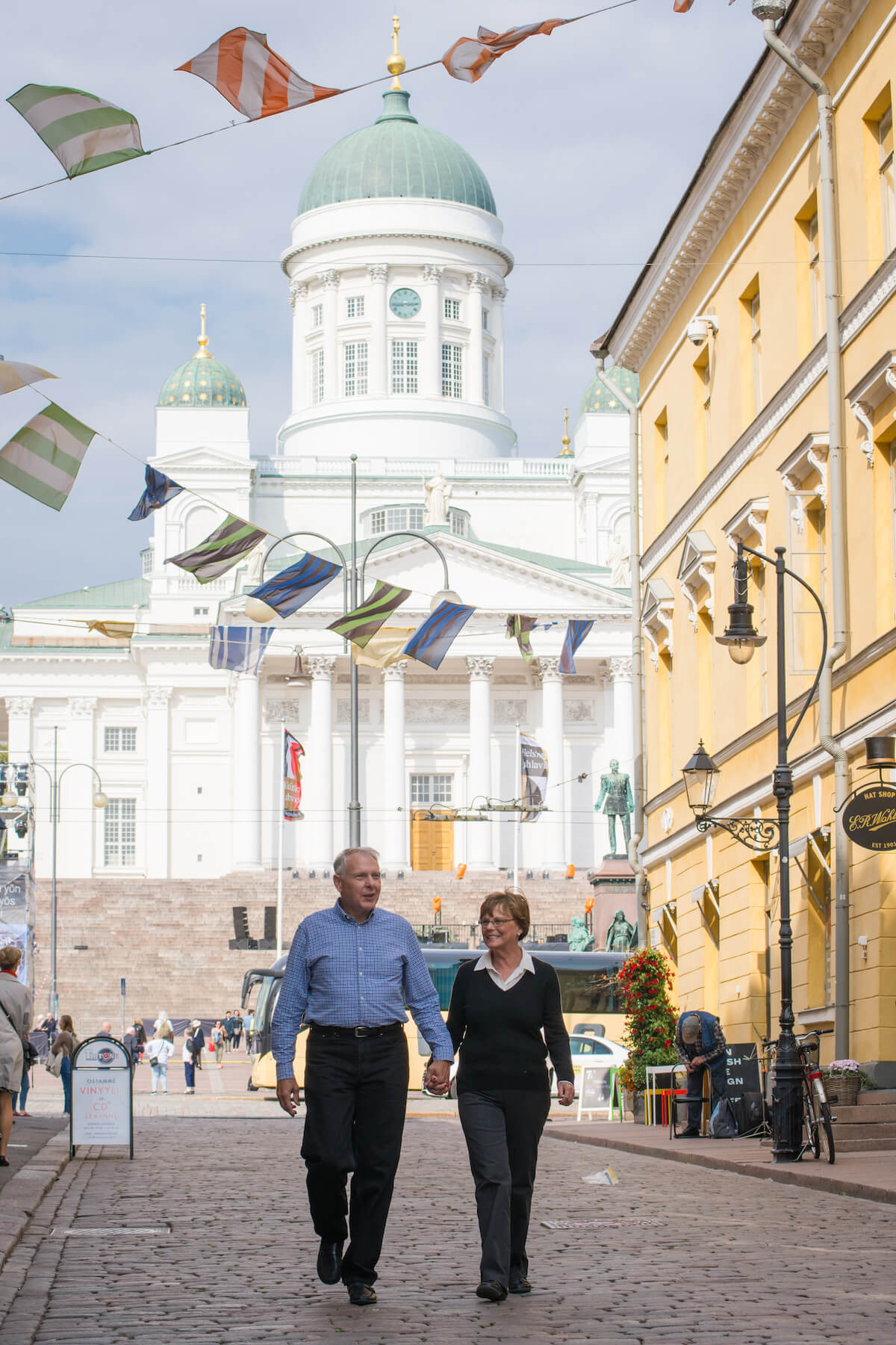 Photo: Emiliano in Helsinki for Flytographer. Gary and partner celebrate an anniversary in Helsinki with an anniversary photoshoot near the Uspenski Cathedral.