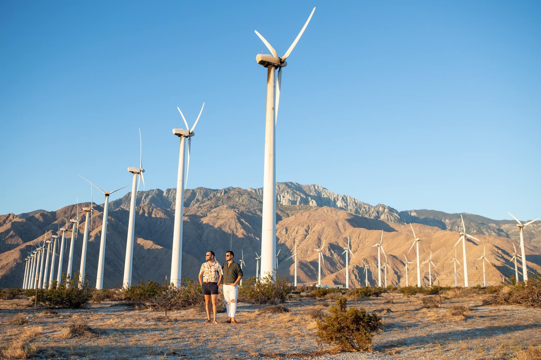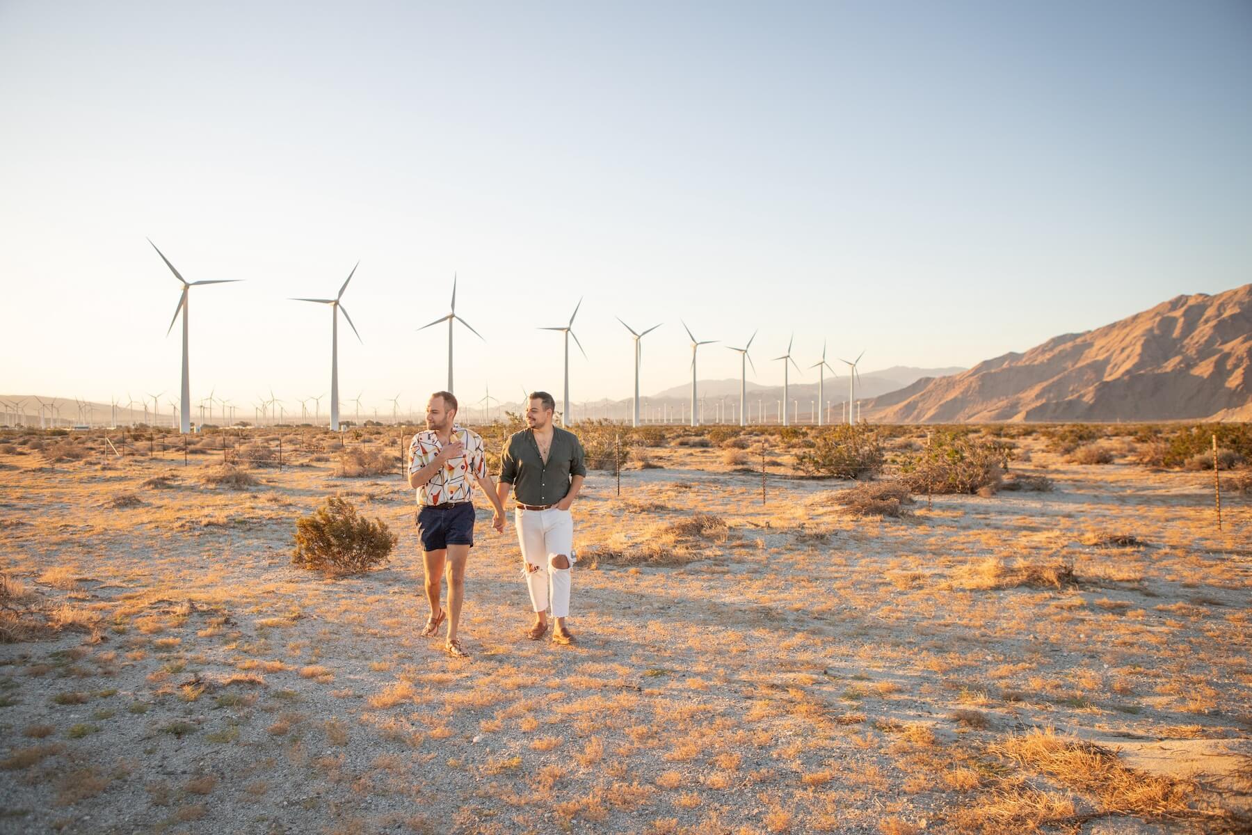 Photo: Daniel and Noi in Palm Springs for Flytographer. Matt and Louie capture memories in Palm Springs with a couples photoshoot at Palm Springs Windmills.
