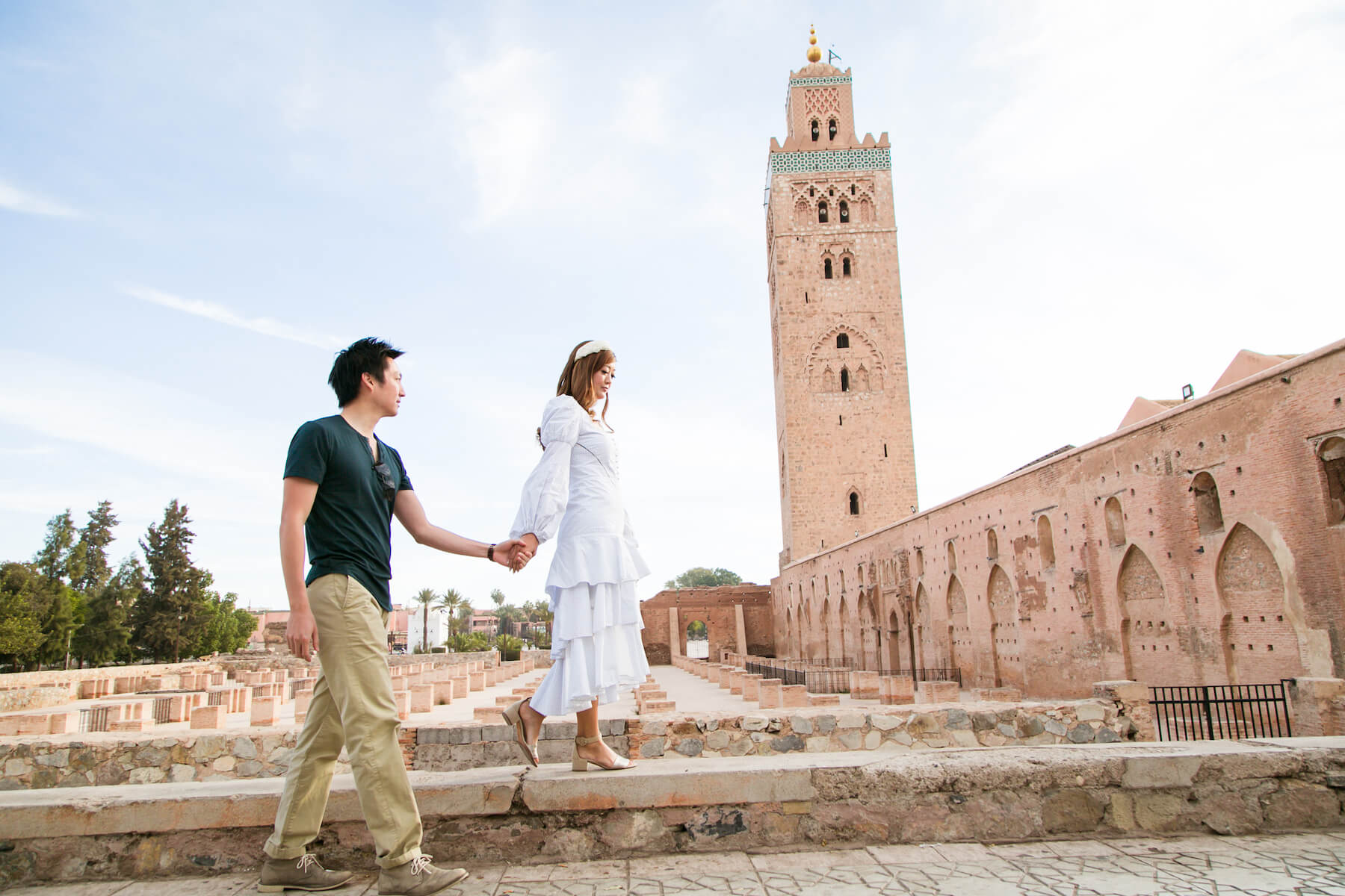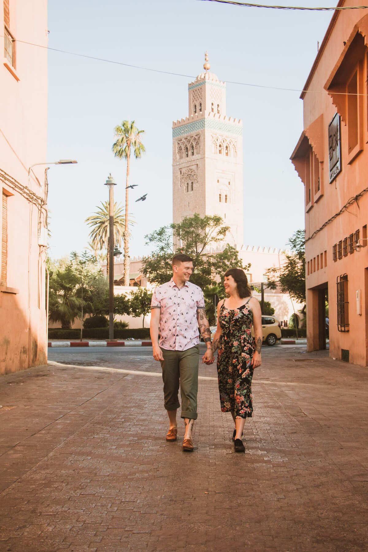 Photo: Ilyass in Marrakesh for Flytographer. Jessica and partner capture memories in Marrakesh with a photoshoot at Koutoubia Mosque.
