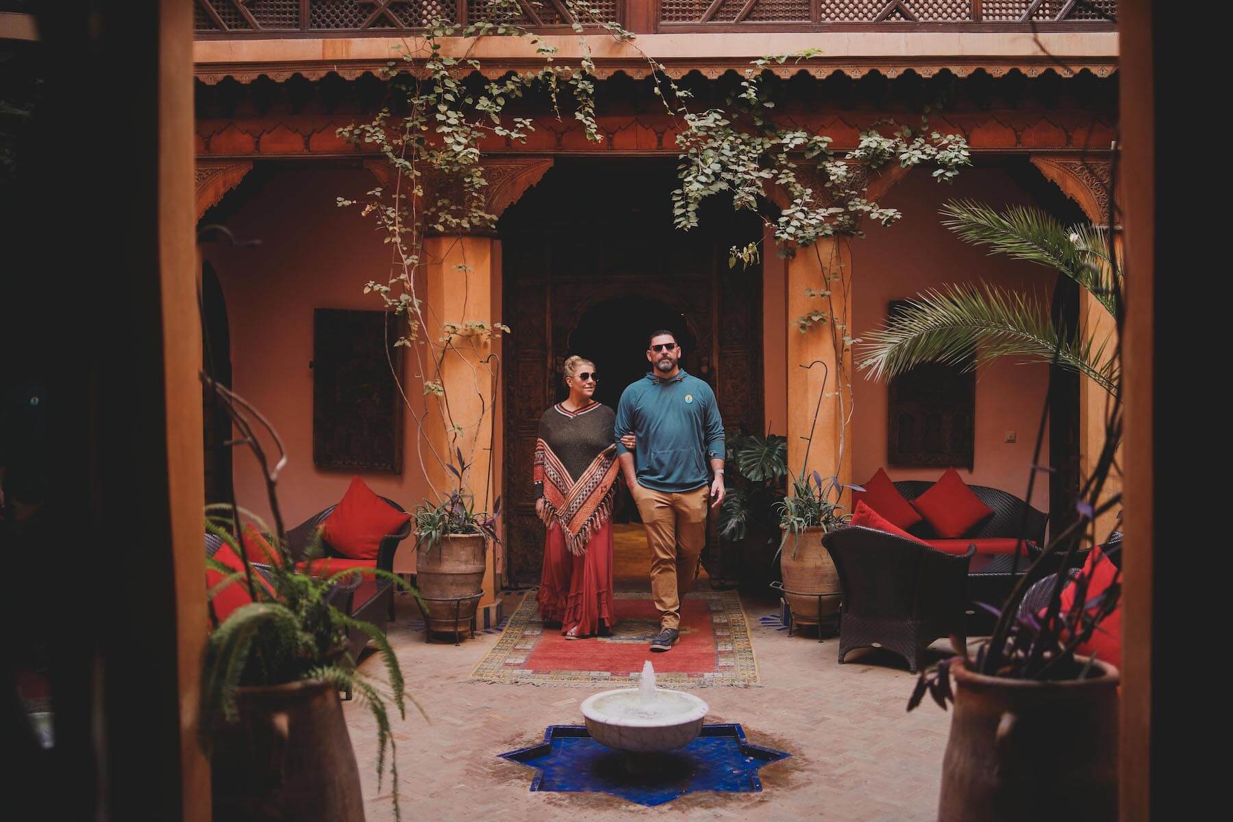 Riads are typical Moroccan patios that occupy the central part of a house. They usually have intricate design elements, such as tile work, arched doorways and carved wood details. In Marrakesh, several homes with riads were turned into hotels and guesthouses. If you are staying in a riad, that’s a great spot to take some pics with the Moroccan flair. 👌