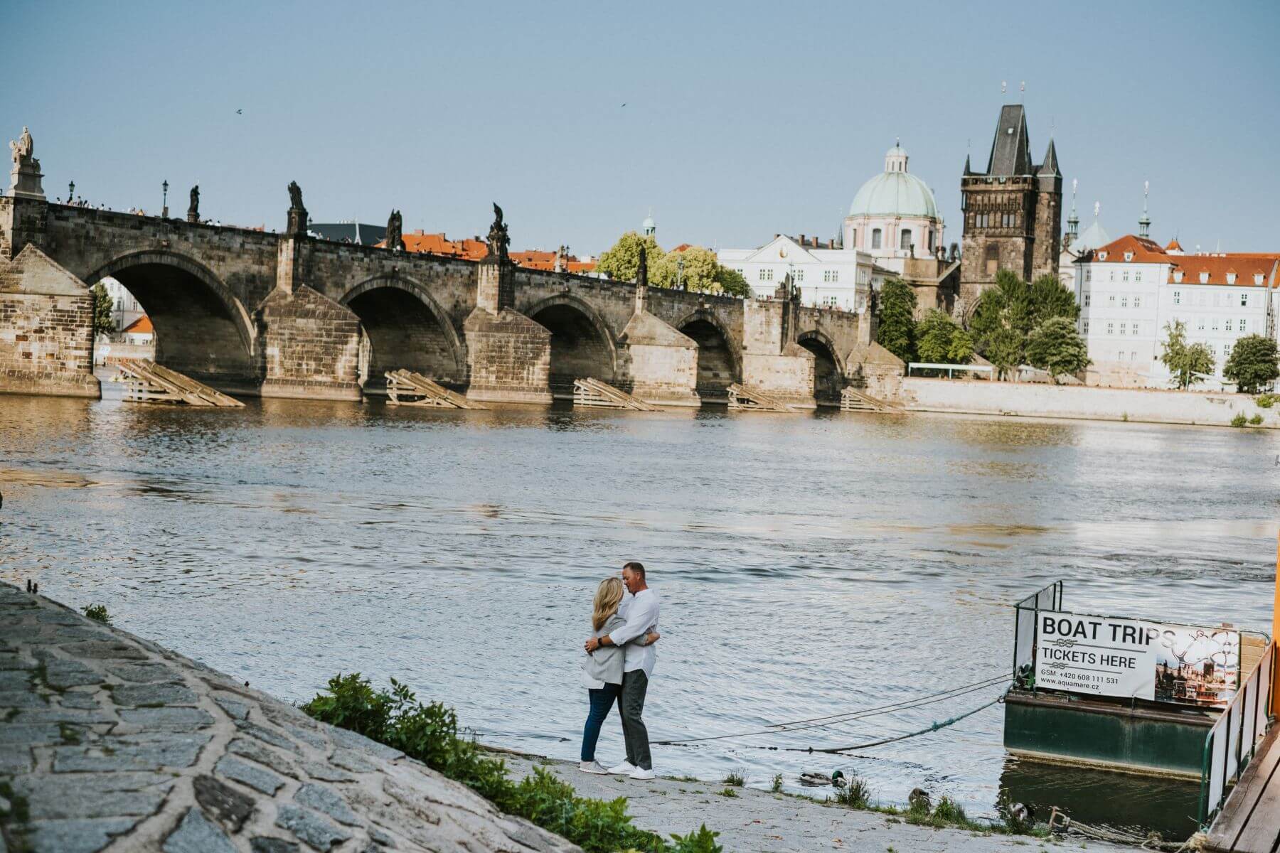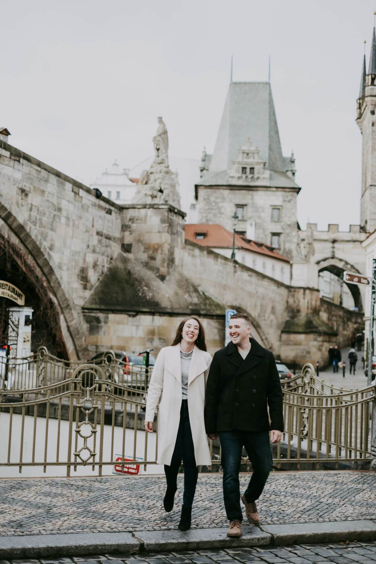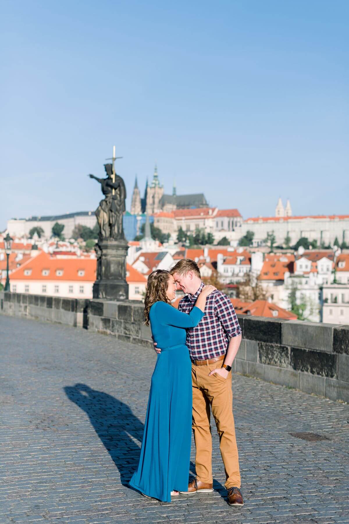 Photo: Eliška in Prague for Flytographer. Bethany and partner capture memories on their honeymoon in Prague at St. Charles Bridge on a couples photoshoot.