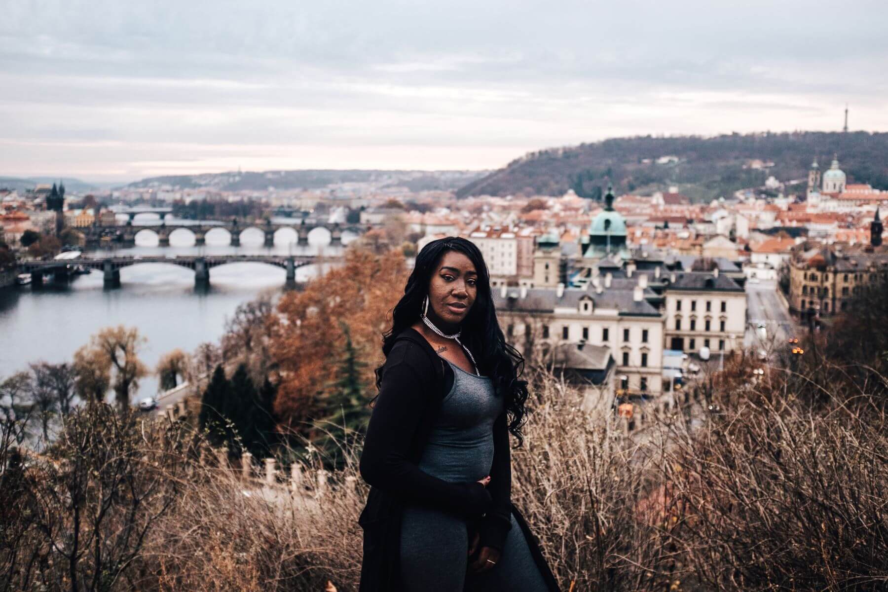 Photo: Natalie in Prague for Flytographer. Carol captures memories of their trip to Prague at Petrinske Sady with a solo adventure photoshoot.