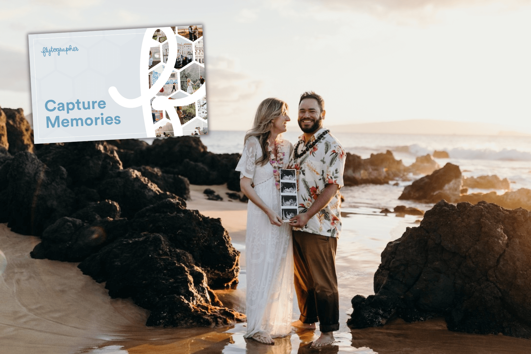 There are so many travel essentials to consider when preparing for a babymoon. Supportive shoes, loose clothing, compression socks, the very specific pillow… the list goes on! Help them check off capturing memories together (something they may not have thought of!) so they can put their phones away and still ensure the trip is documented. They can even bring some cute props with them on vacation like their sonogram, little baby shoes or a newborn onesie for their pregnancy announcement. Their local Flytographer can also recommend nearby florists if they want to get some blue or pink flowers to bring to their session for a gender reveal. 🌸