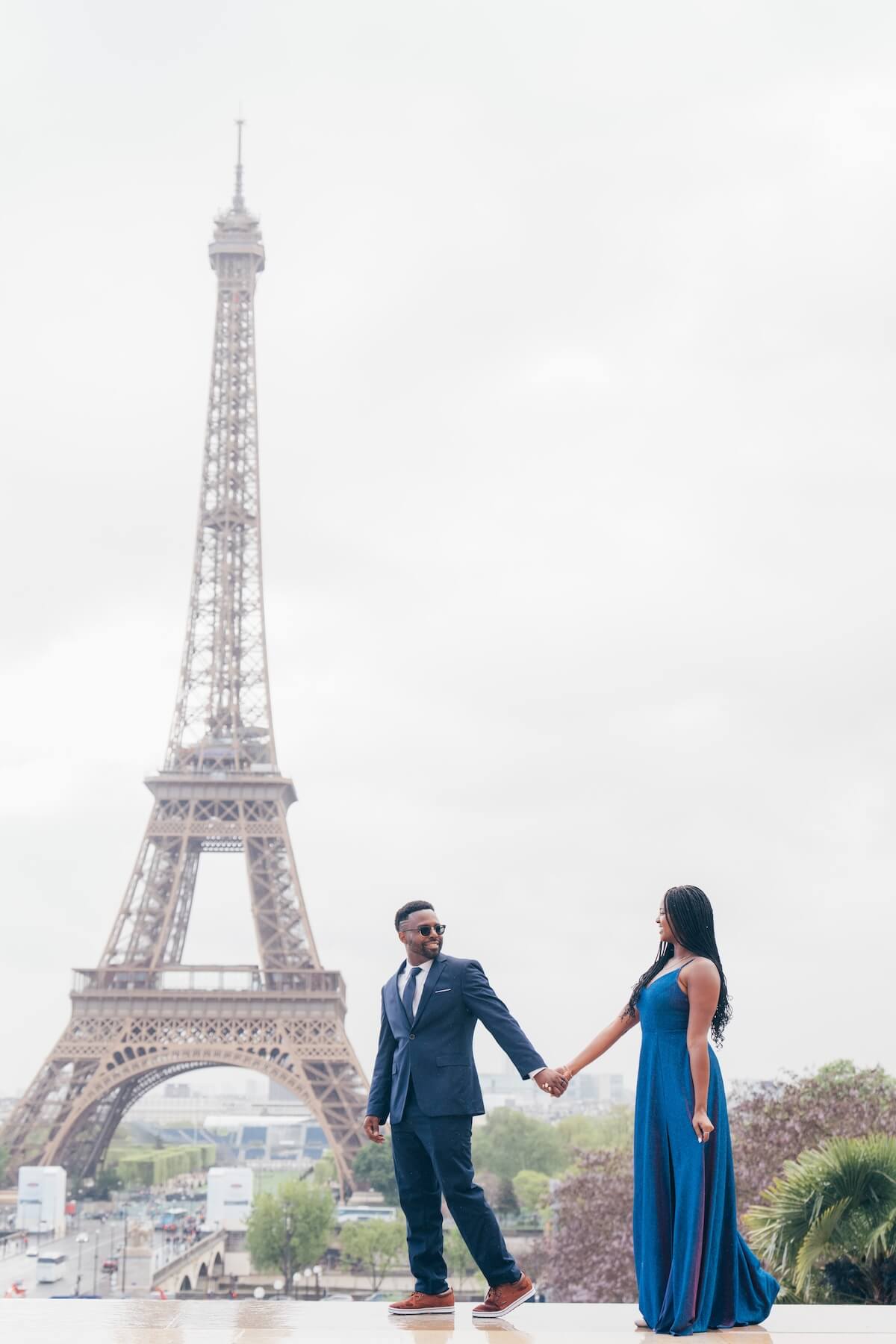 - Statement outfits: Jumpsuits are great in certain places, as are florals, fun patterns, and long flowy pieces. The latter can bring a touch of movement to your couple’s pics. 💃