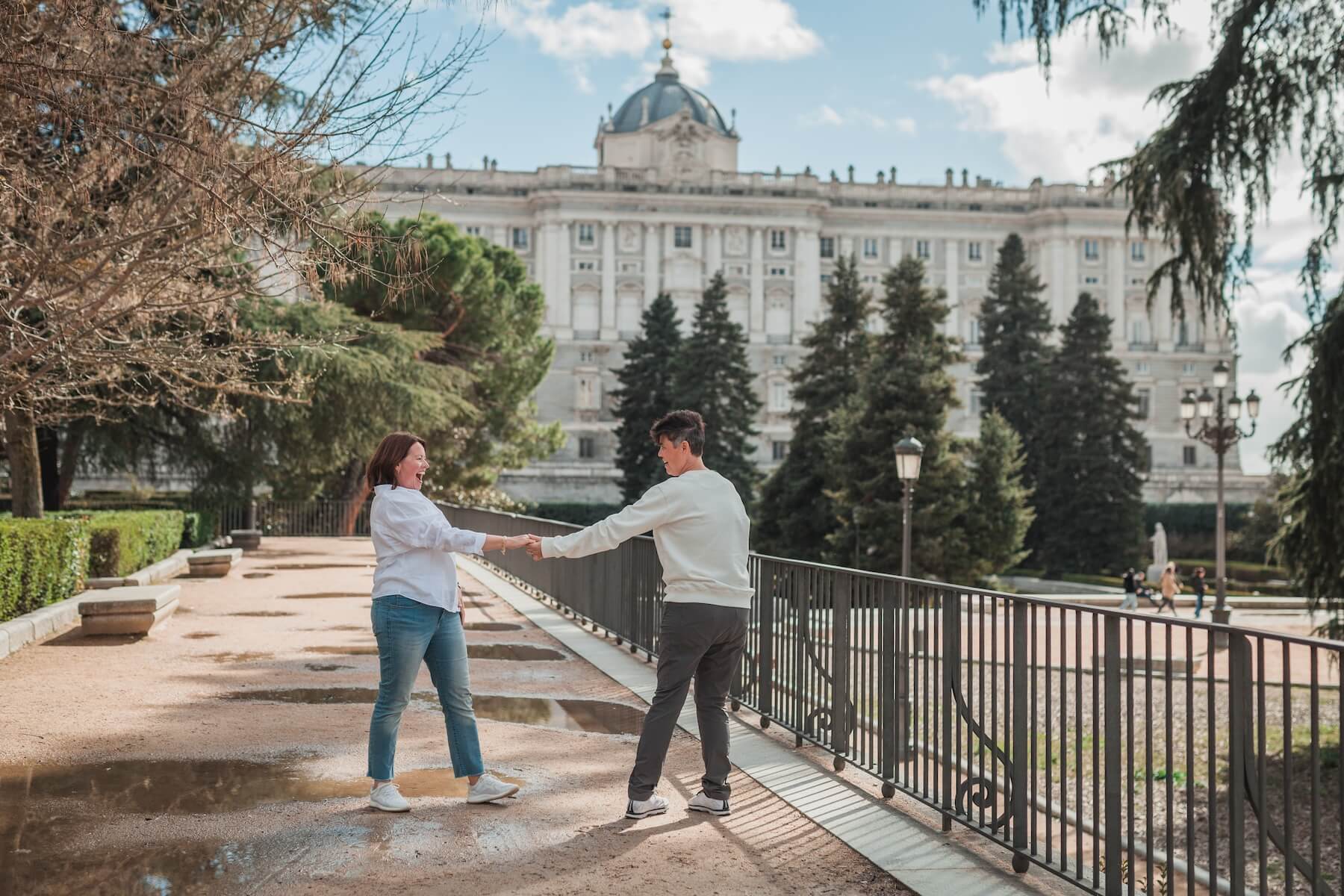 Trying out a few different photoshoot poses doesn’t hurt, but this doesn’t mean channelling your inner top model either. The key is to relax and enjoy yourselves, allowing your personalities and connection to shine through. Whether it’s walking hand in hand, dancing together, or exchanging kisses, focus on what feels natural and comfortable with your partner — that’s what will look best on camera. 🙂