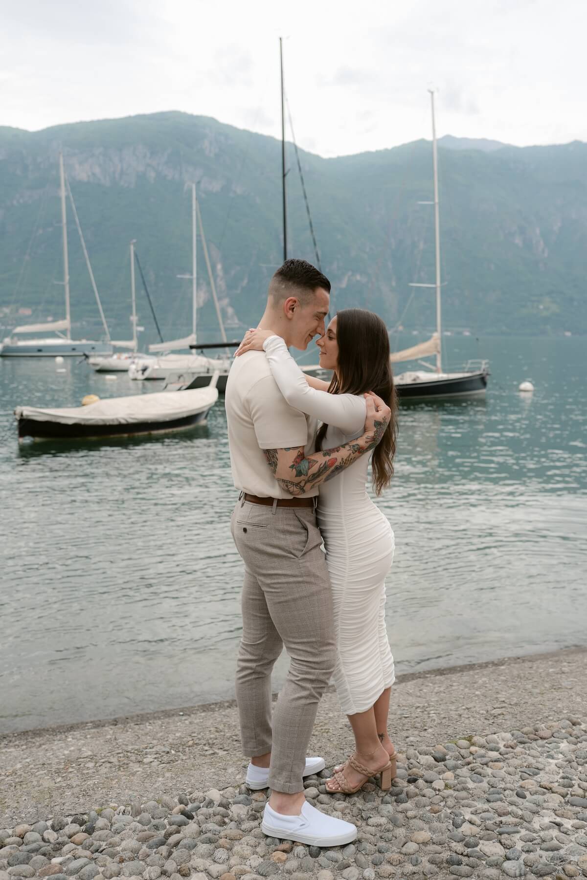 - Giving hugs: Cuddling close in a warm hug always makes for cute couple photos, leading to more natural and candid shots. 🤗