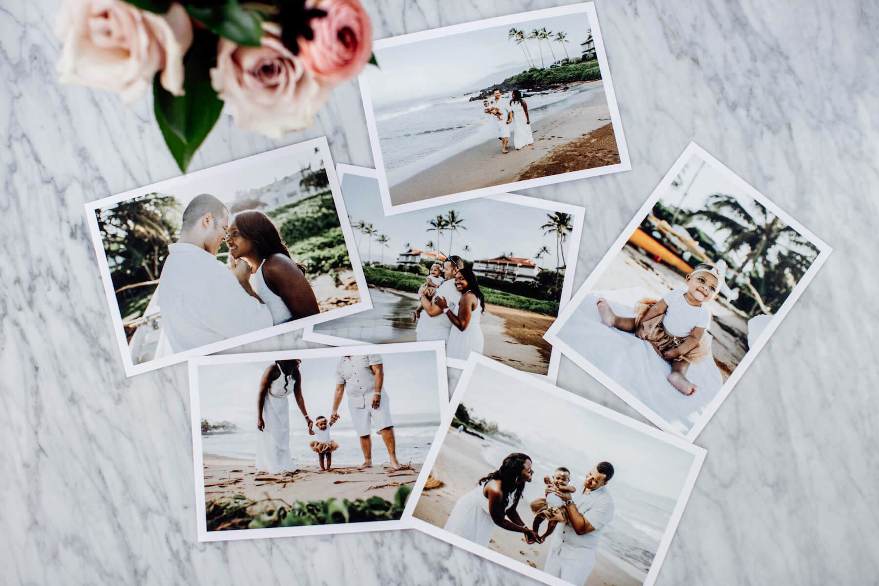 Photos printed: Marie in Maui for Flytographer. Tanisha and their family celebrate memories on their family trip to Maui with prints of their family photoshoot.