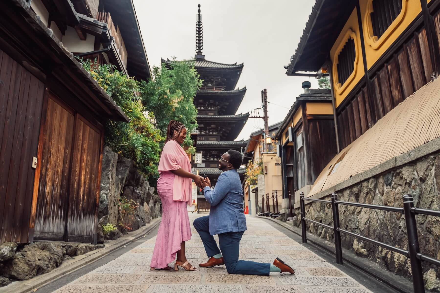 Photo: Coo and Yurika in Kyoto for Flytographer. Adedayo and partner capture memories in Kyoto with a proposal photoshoot in the Higashiyama District.