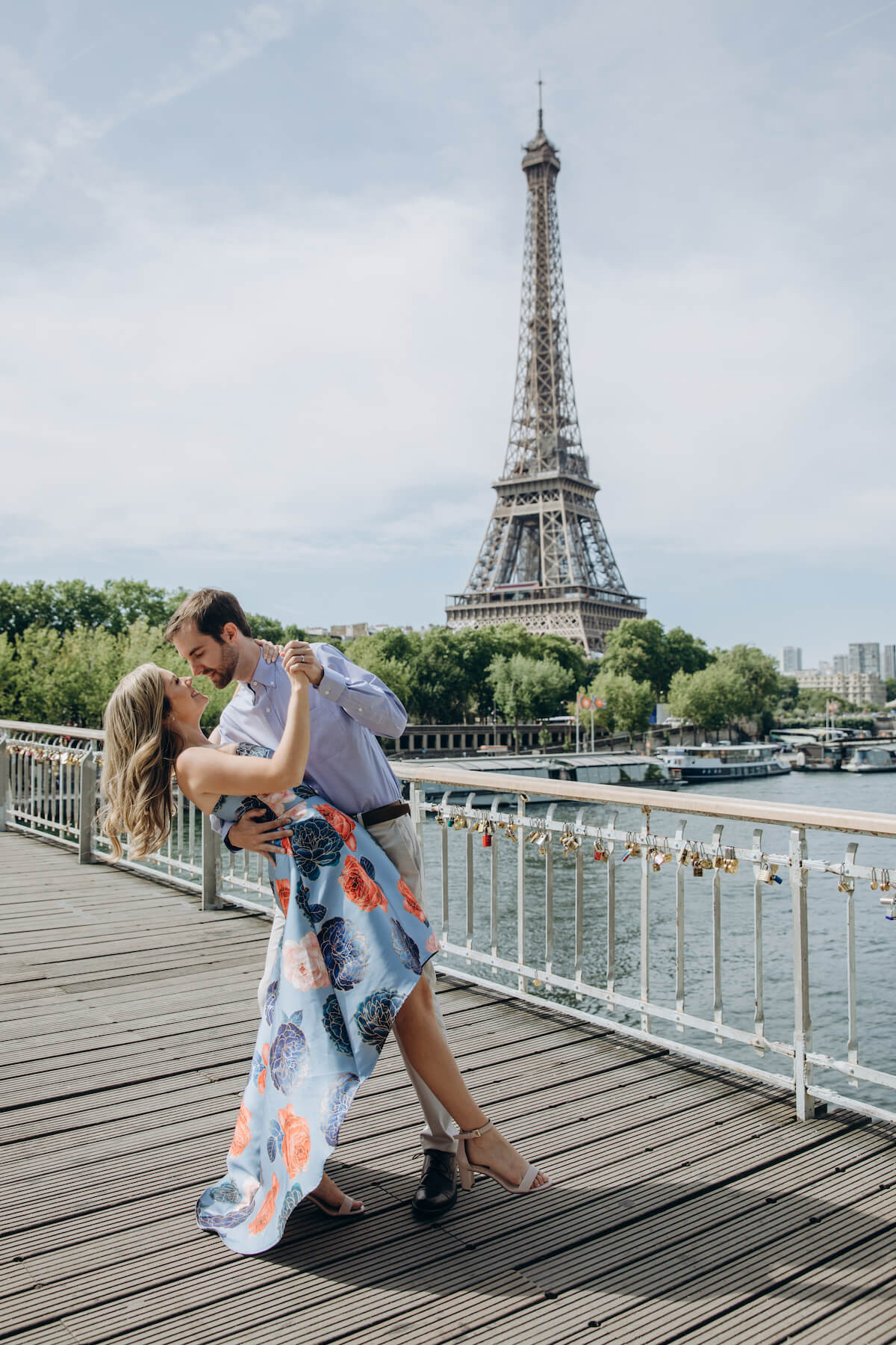 Photo: Maria in Paris for Flytographer. Alessandro and partner capture memories in Paris with a couples photoshoot at Bir-Hakeim Bridge & Eiffel Tower.
