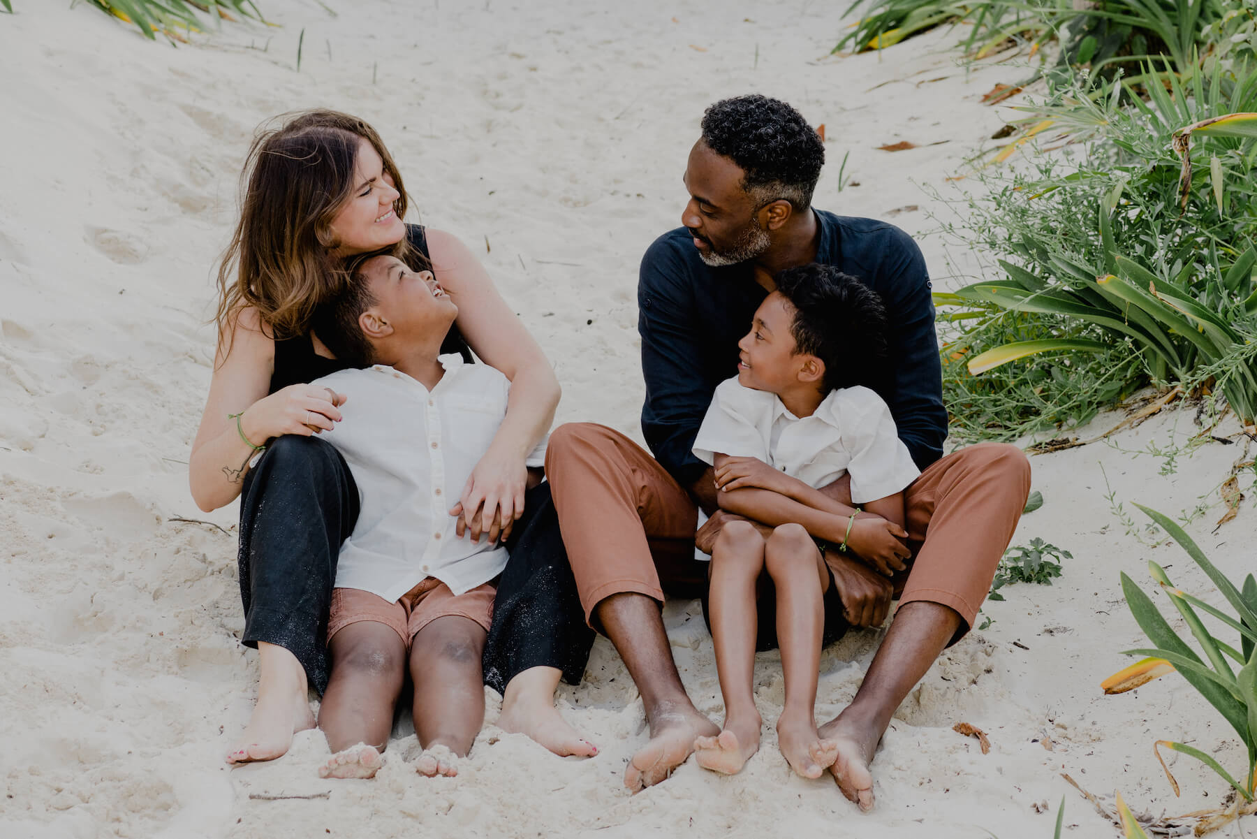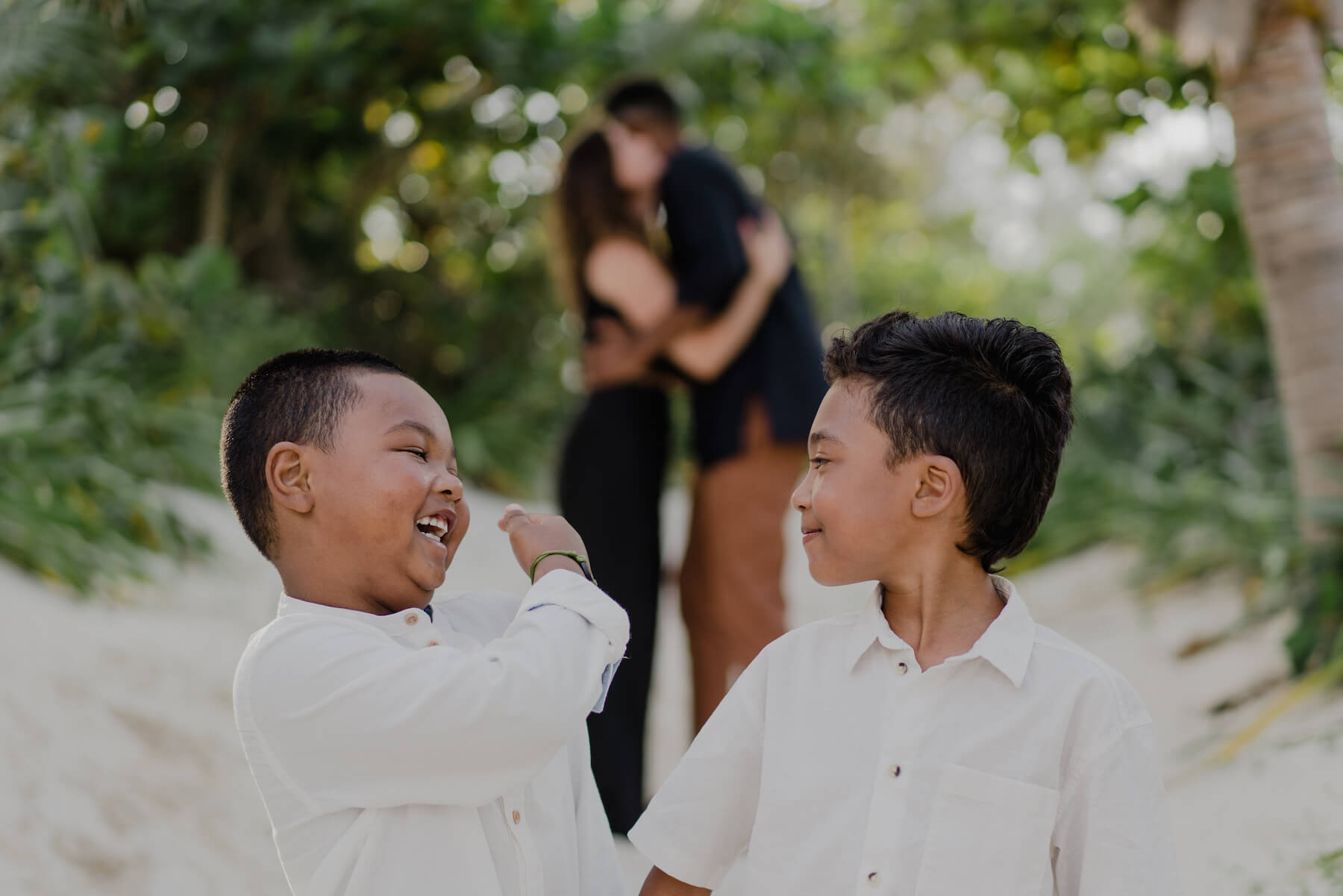 It’s always high on the priority list to get some photos of just the kids, or just the parents, so have the kids break away from the parents and focus on smaller groupings. If some people in your group need a break — kids, dad, you know the look: “I need a minute… and some SPACE!” — by all means adjust these groupings as the mood takes you! Try having mom & dad snuggle together for some solo time, while kids high-five, hug, run in circles, play tag, and just have fun. This separation allows your Flytographer to get photos of the different groups, as well as everyone in the groupings with some added depth (think the parents holding hands in the background while kids are running in circles closer to the front of the frame). This pose tends to take on a life of its own, and that’s the point! Like the rest of your vacation: have an open mind and roll with it. Let your beautiful family shine!✨