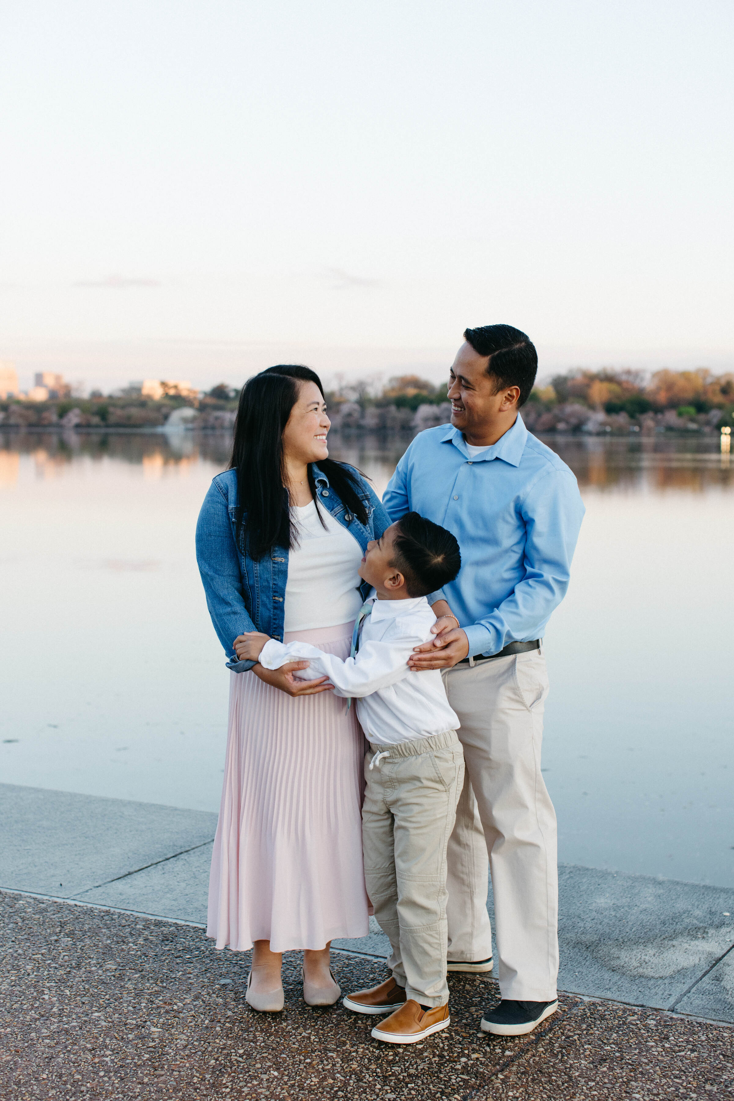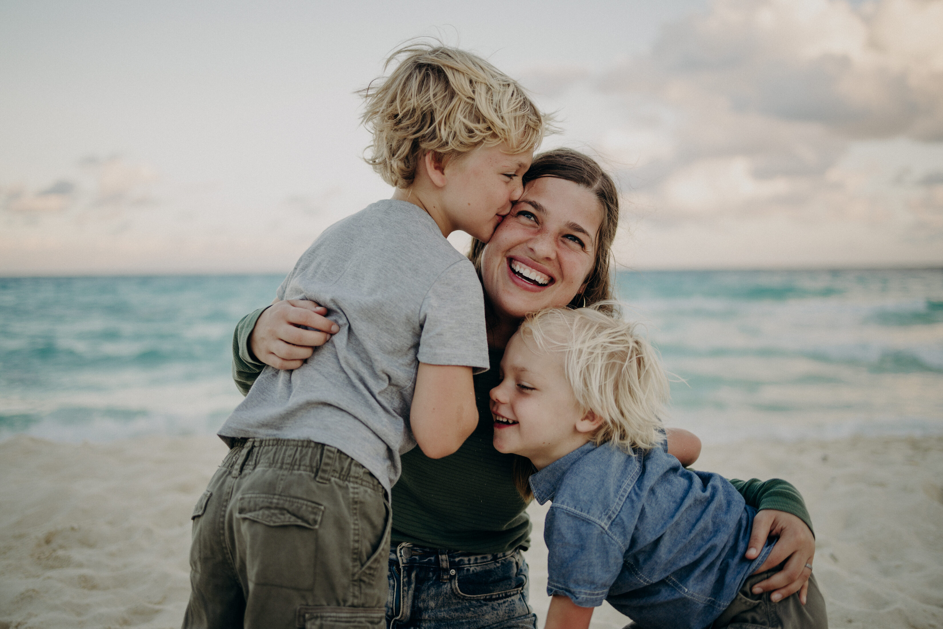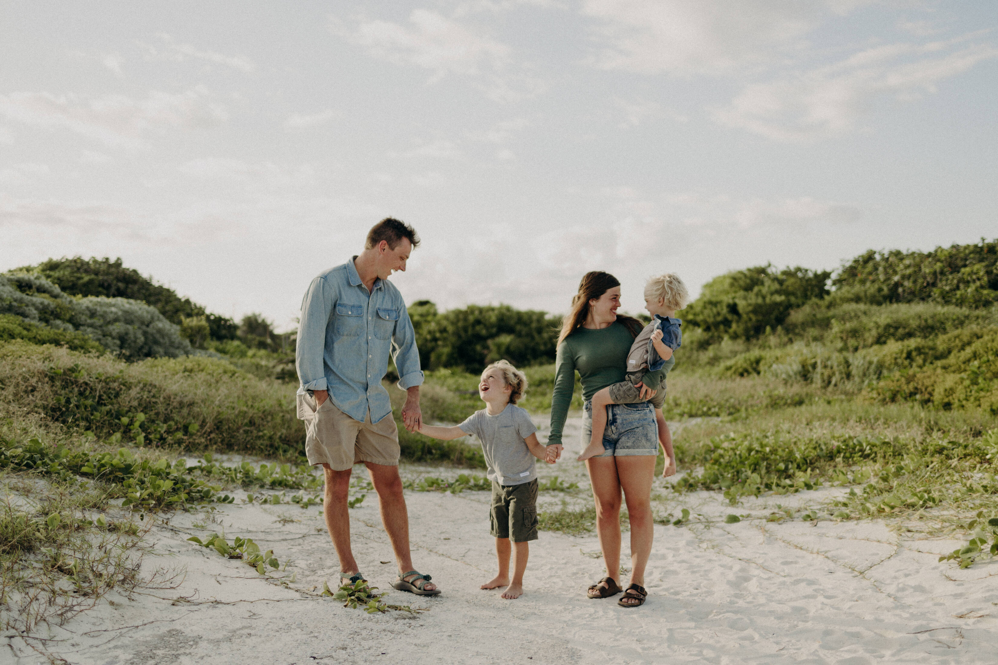 The best way to avoid looking awkward in photos is to keep moving and interacting naturally with your family members instead of holding still and saying “cheese!” Focus on having genuine fun with your loved ones – whether that’s through tickle fights, dance parties, or gentle snuggles – and let your photographer capture those authentic moments of connection that showcase your family’s real personality.
