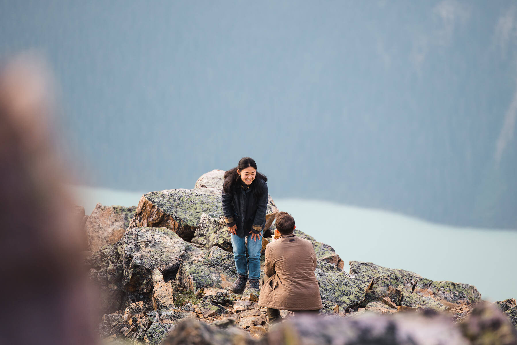 Photo: Darine in Banff for Flytographer. Drew and partner celebrate a proposal in Banff with a proposal photoshoot on Mount St. Piran.