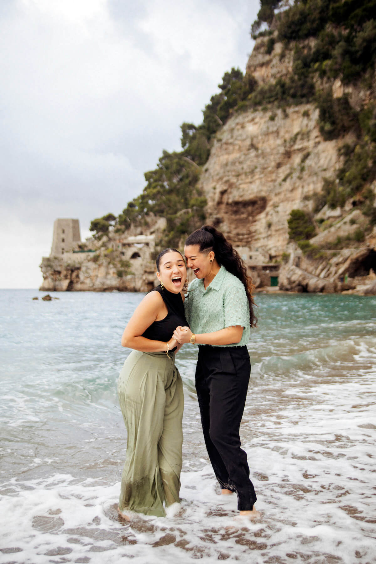 Photo: Barbara & Claudio in Positano for Flytographer. Oriana and partner celebrate a proposal in Positano with a proposal photoshoot at the Beach.