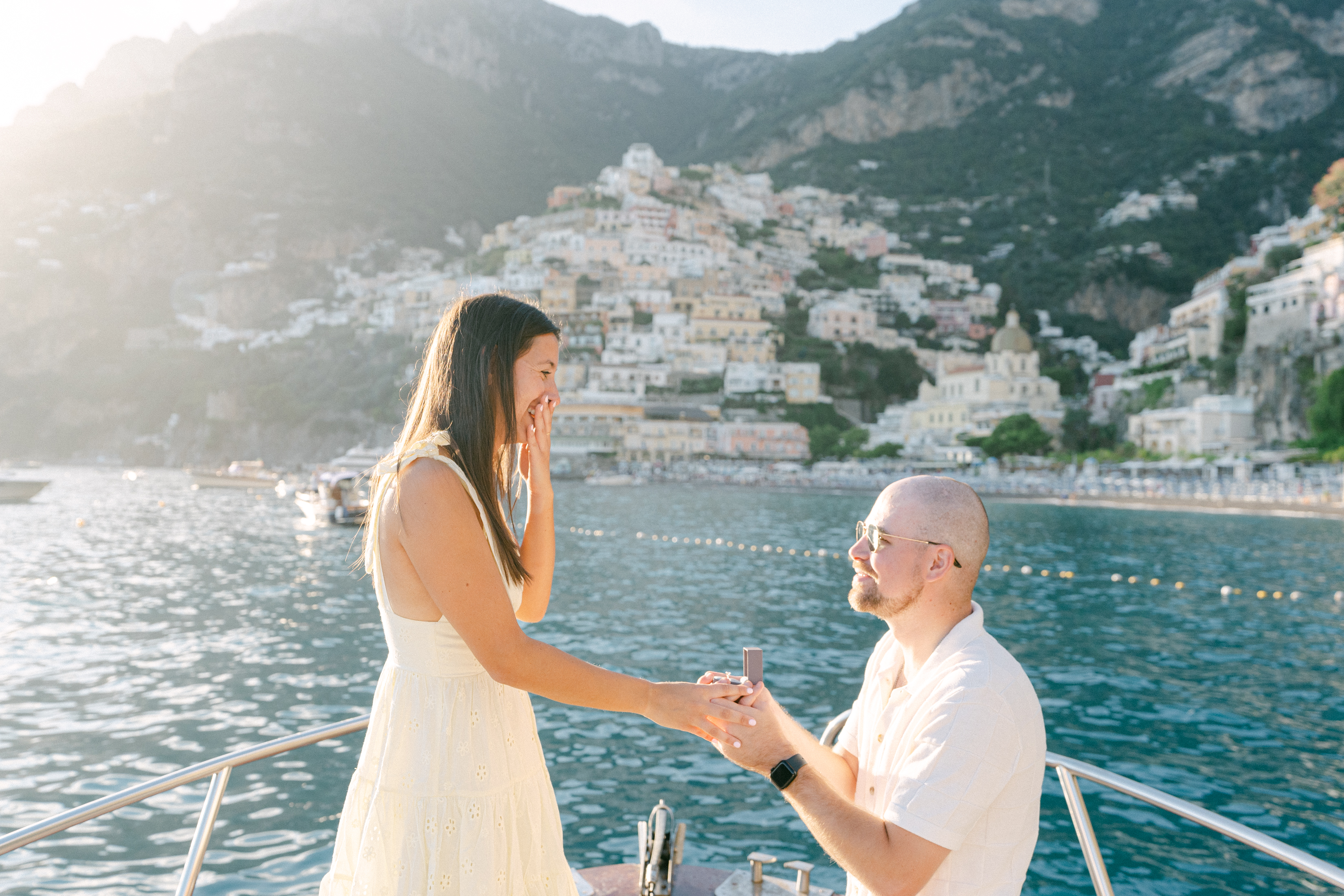 Photo: Andrea in Positano for Flytographer. Stuart proposes to his partner on a boat in Positano, Italy.