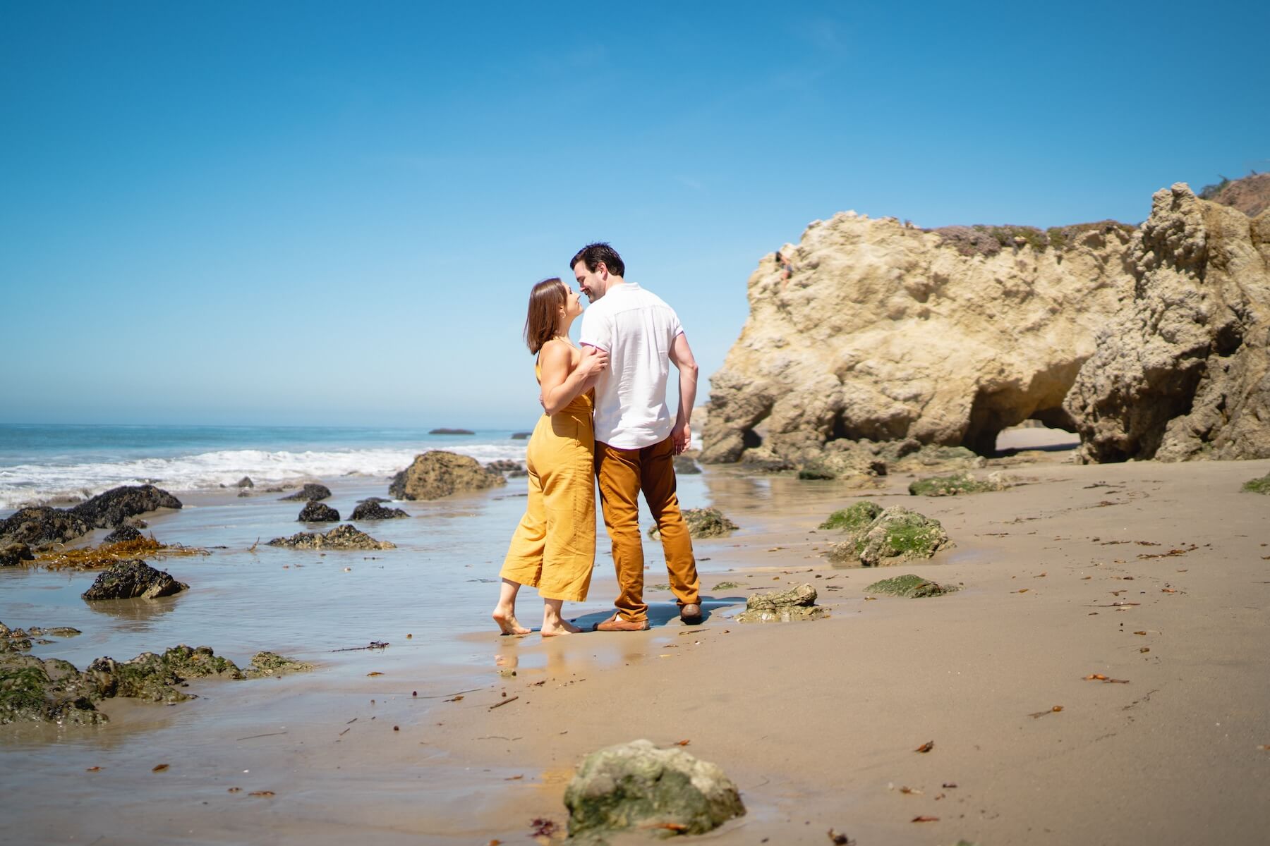 Los Angeles has countless beaches that would be perfect for your engagement photo shoot, but none are quite like El Matador Beach. Nestled along the rugged coastline of Malibu, El Matador Beach is known for its dramatic cliffs, golden sands, and stunning sea caves. This secluded beach provides a romantic and picturesque setting for couples looking to capture their love story and special moment against the backdrop of crashing waves and majestic rock formations. Your professional engagement photographer will be able to capture these moments perfectly.⛱️
