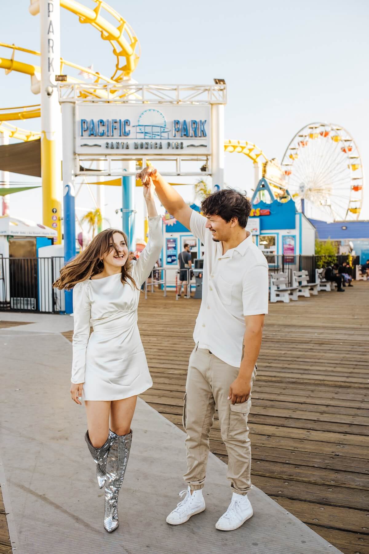 Photo: Allie in Los Angeles for Flytographer. Rebecca and partner capture memories in Los Angeles with a honeymoon photoshoot at Santa Monica Pier.