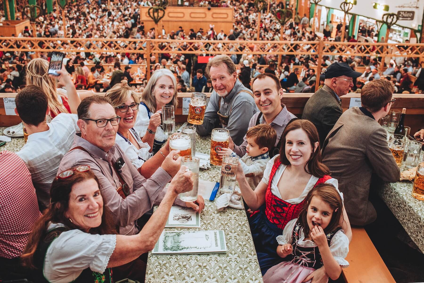 Everyone is there to drink, sing, eat, and just have a great time. When you finally snag that hard-earned spot at a beer tent table, be sure to enjoy the company of the people you’re sharing it with. 🎉