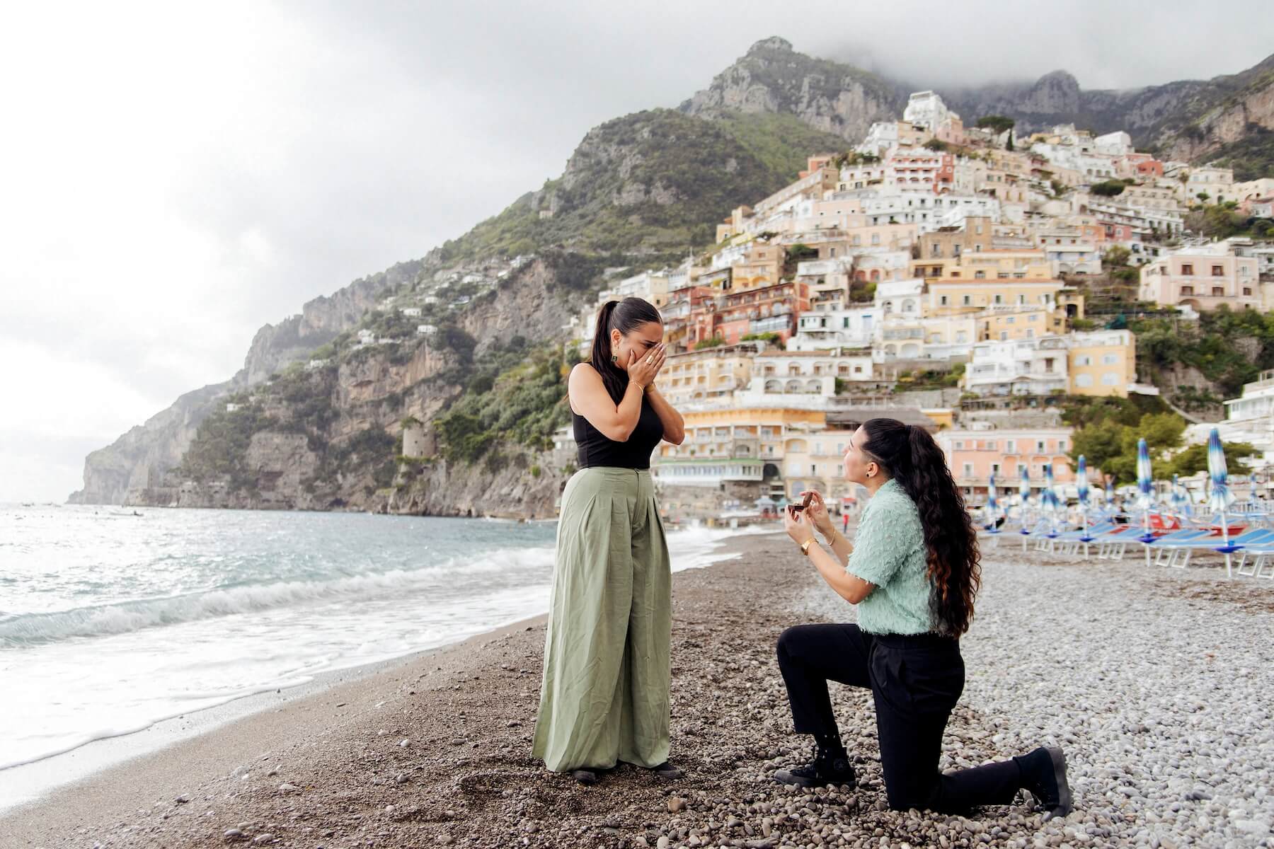 Photo: Barbara and Claudio in Positano for Flytographer. Oriana and partner capture memories in Positano with a proposal photoshoot on Positano Beach.