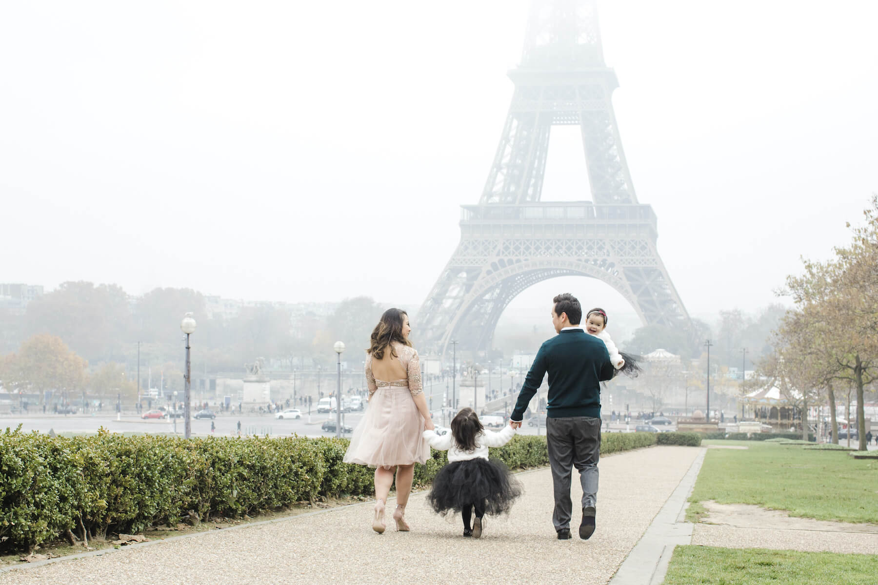 Photo: Olga in Paris for Flytographer. Katherine and family enjoy a stroll as they capture memories in Paris at the Trocadéro with a family photoshoot.