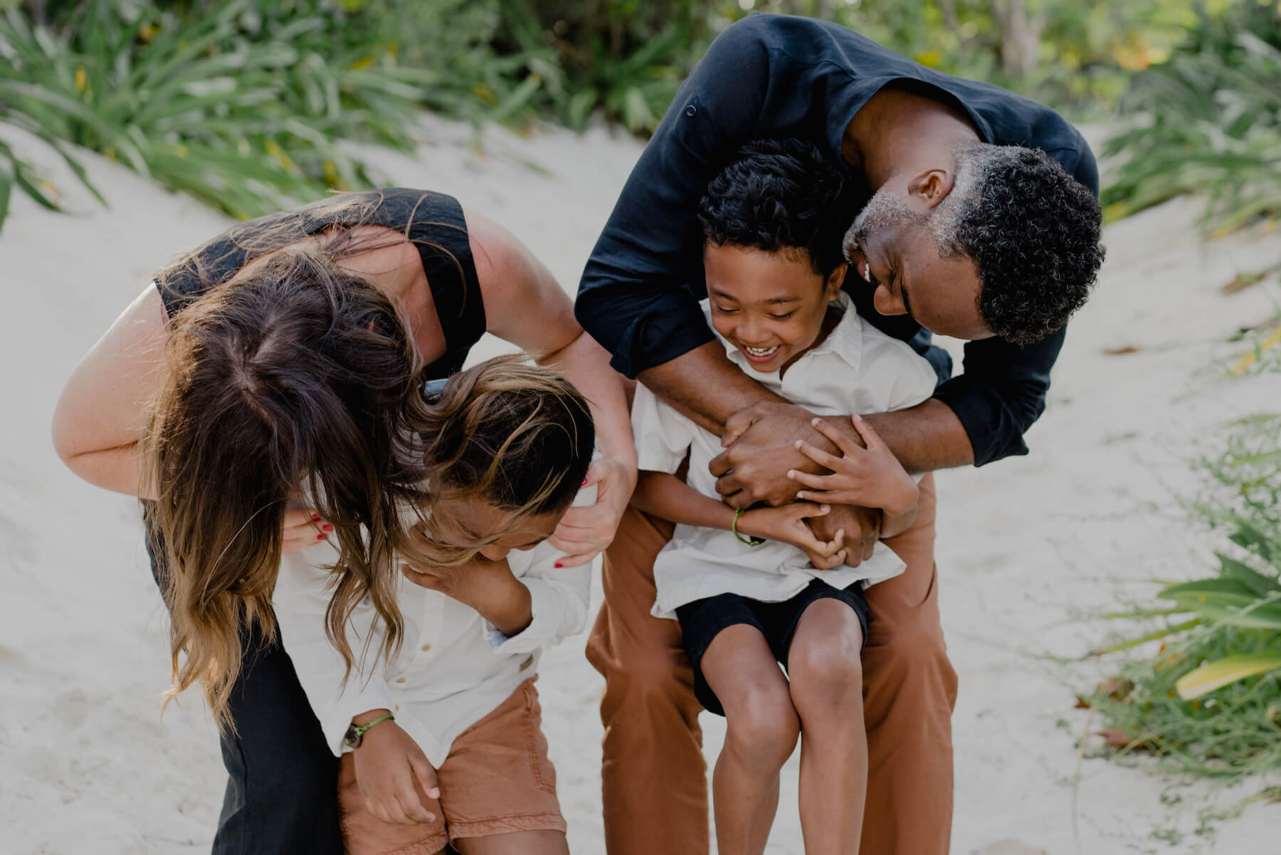 “Swing the Youngest” is one of our classic posing ideas and a real kid-pleaser. 99% of kiddos like to be swung, and those who are swinging are sure to wear out long before the swing-ees! 😅 To give grown-ups a break, this can be a fun idea for older siblings, or even a mix of a parent and sibling as they swing the youngest family member. This “pose” is also super flexible and easily adapted whether you’re in sand, grass, hard ground, or even while jumping off curbs, rocks, and more. Mom wearing a dress? Use that spare hand to play with the dress or toss hair to feel fresh and candid. Get creative and have fun! ✌︎