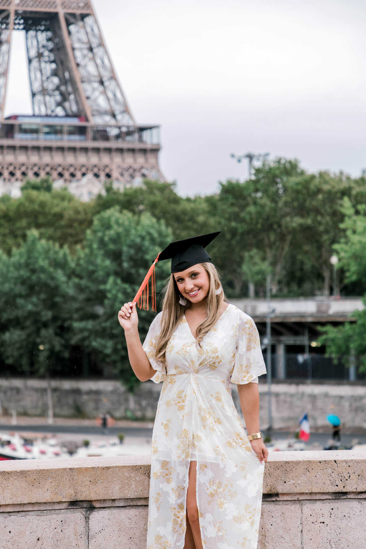Photo: Rachael in Paris for Flytographer. Dawn and their family capture senior photos together in Paris with a mother-daughter graduation photoshoot.
