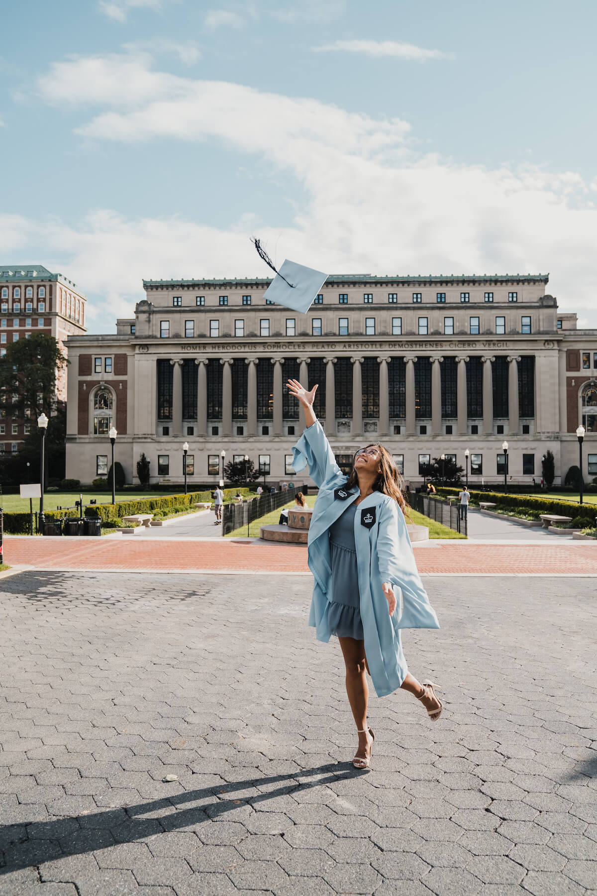 Photo: Sehee in New York City for Flytograpaher. Sharelle and their family capture senior photos at Columbia University in NYC with a graduation photoshoot.