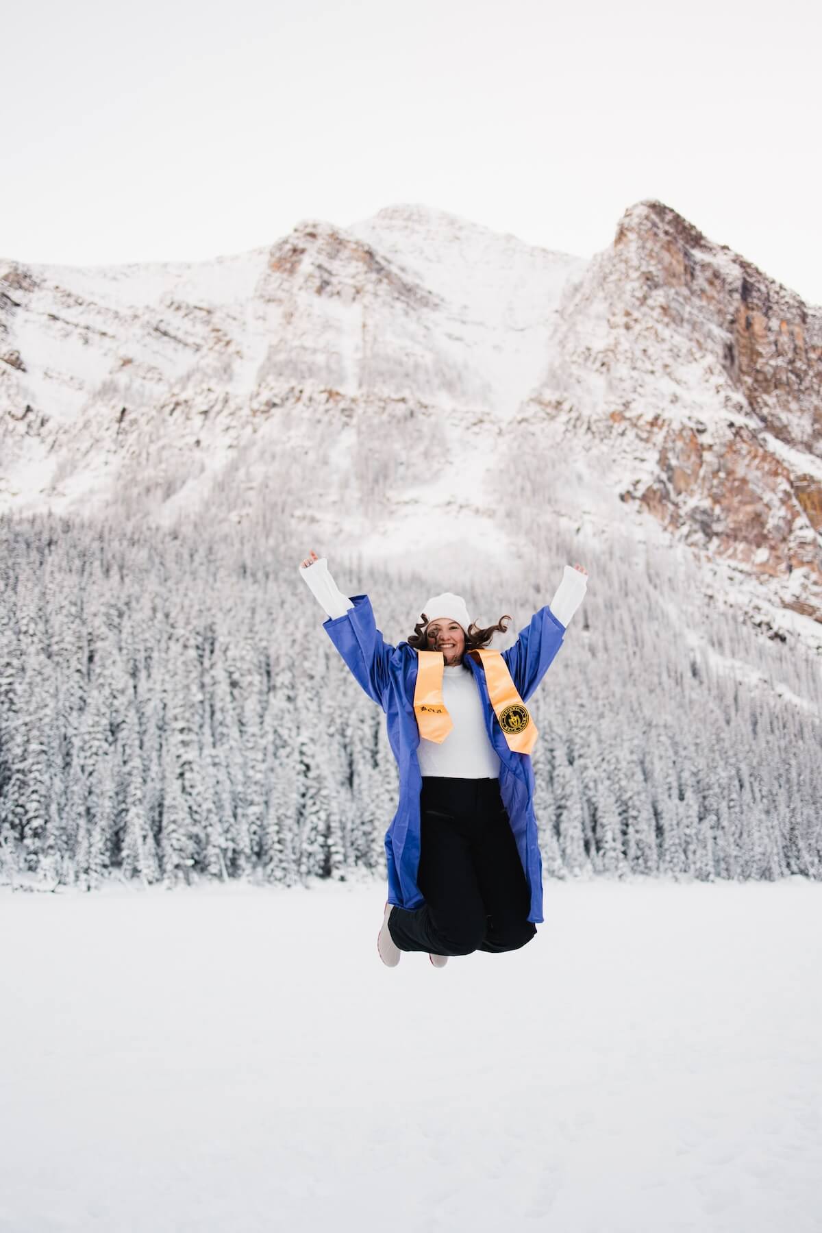 Photo: Darine in Lake Louise for Flytographer. Lauren captures memories in Lake Louise with a Graduation photoshoot at Chateau Lake Louise.