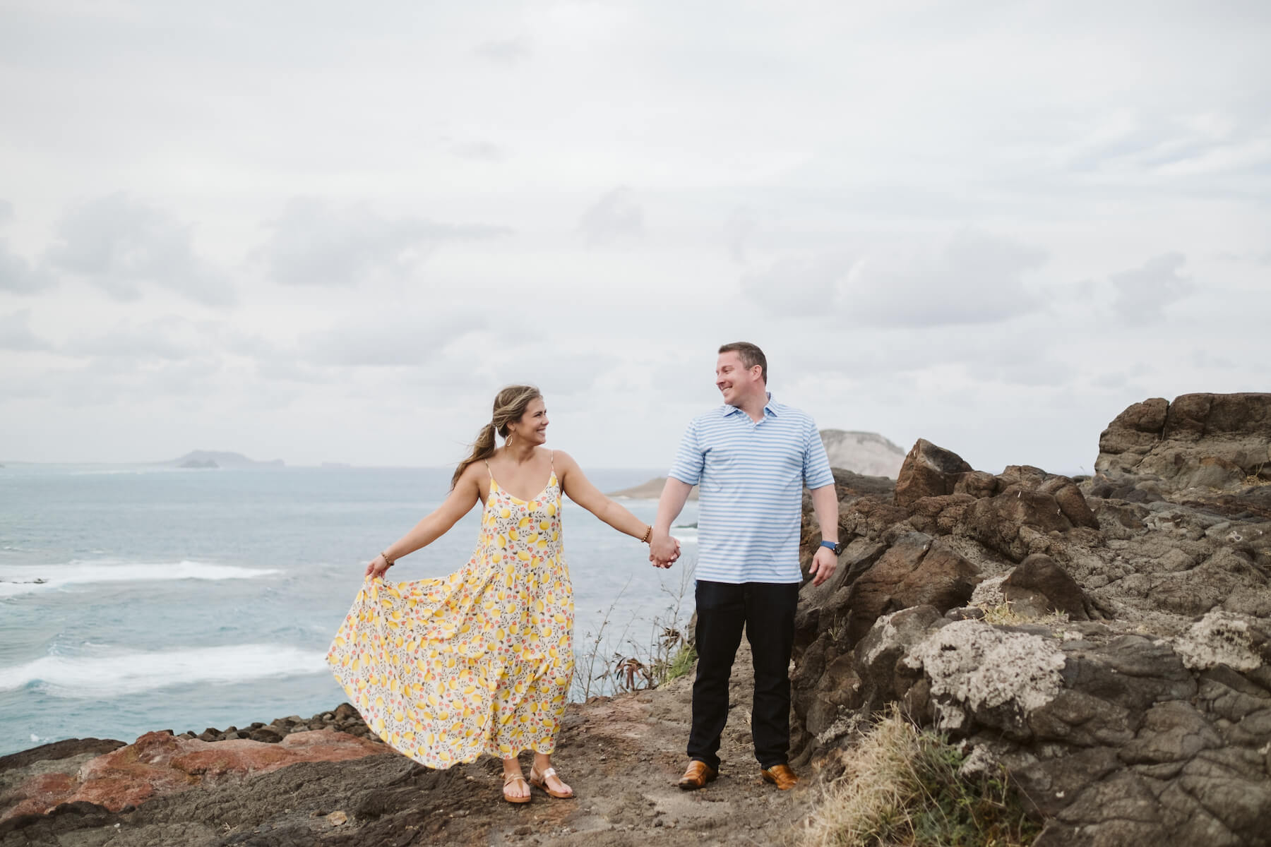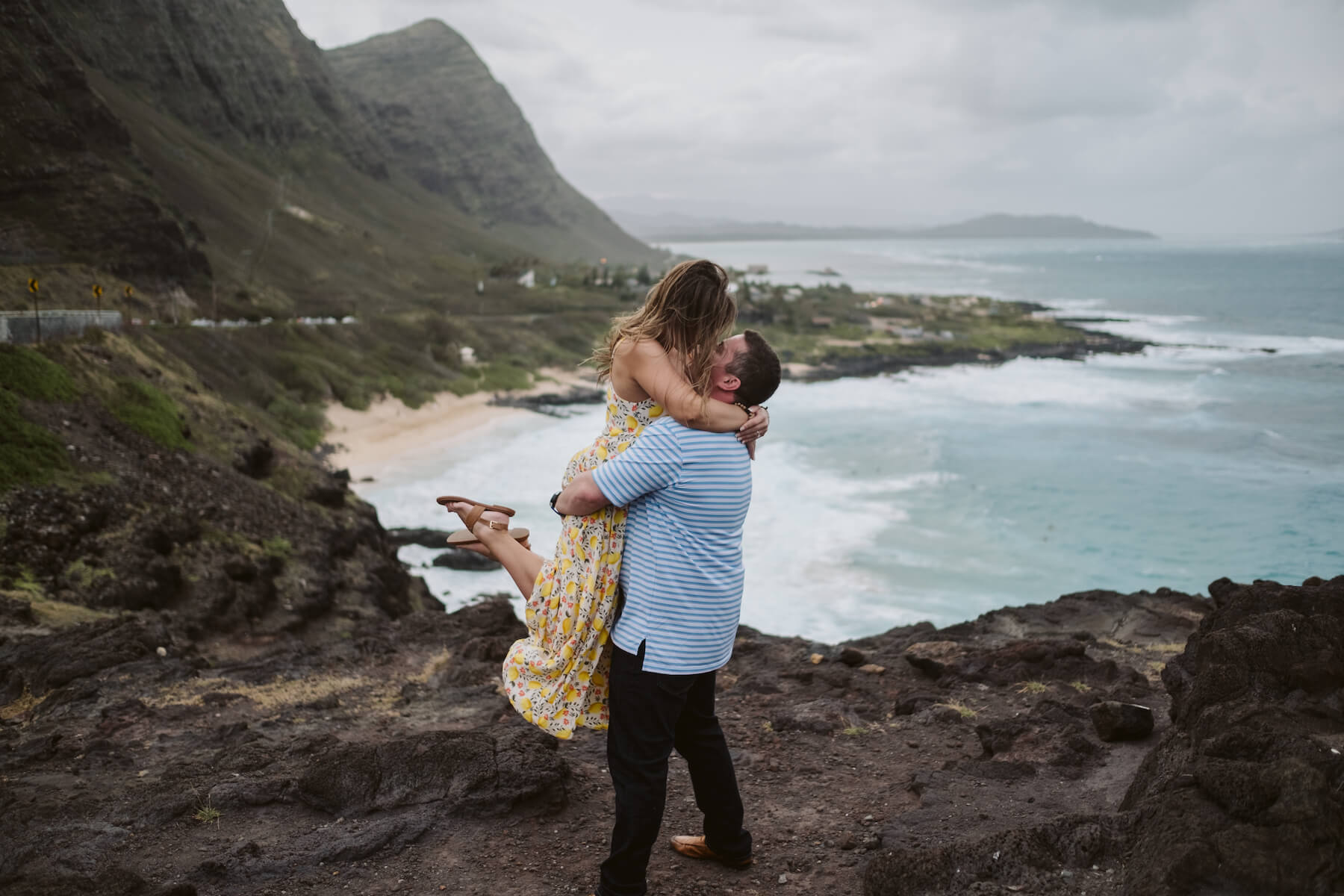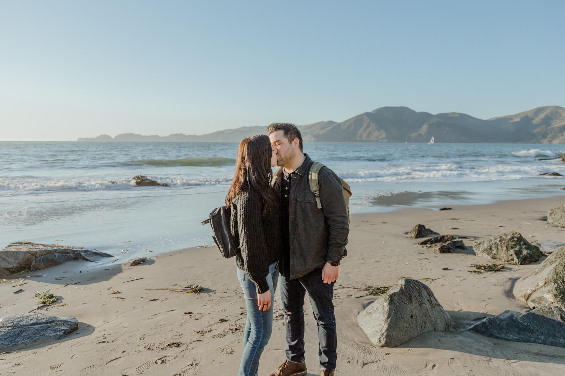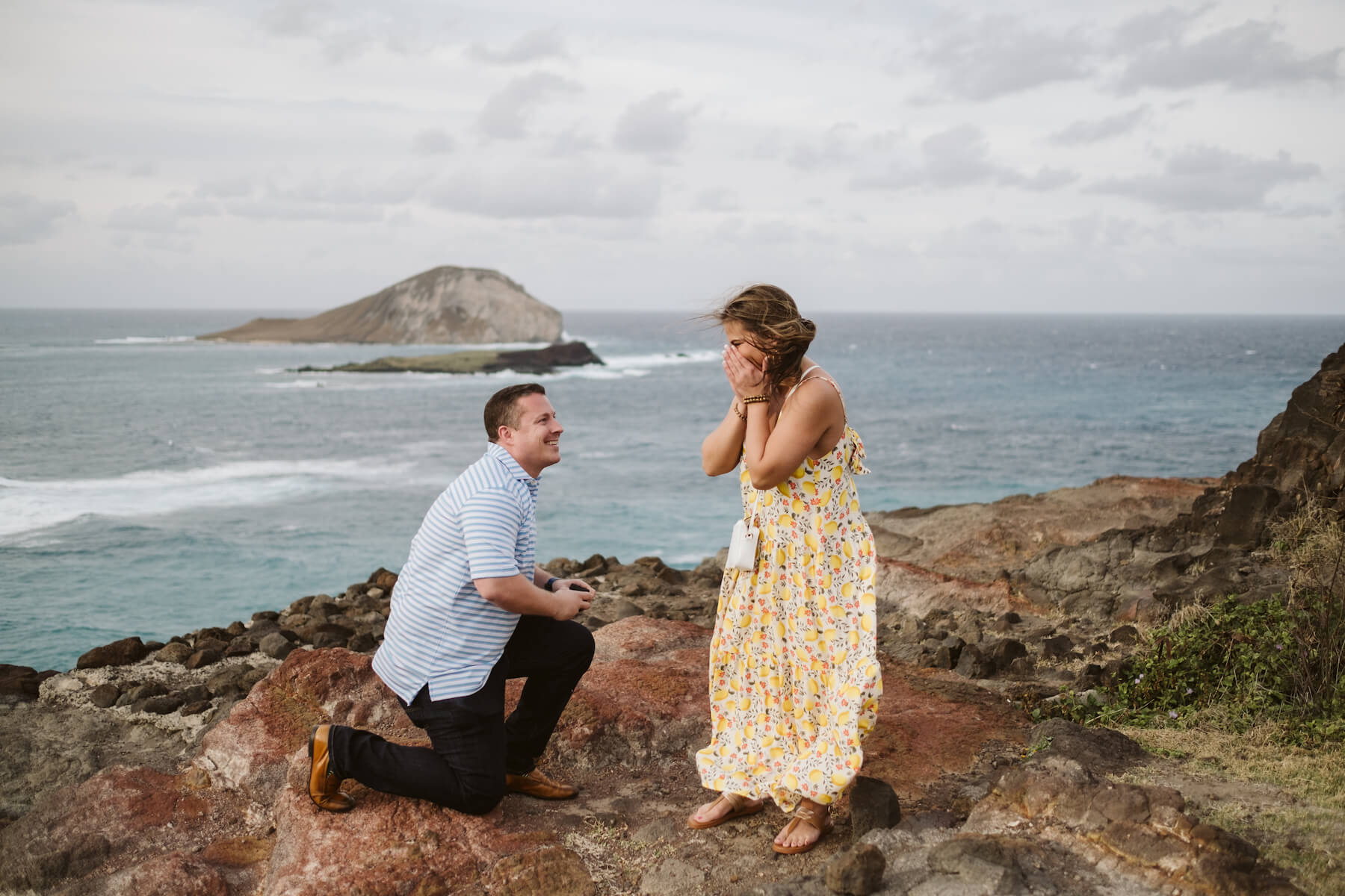 “I had planned to meet the photographer (who was posing as a friendly tourist) down at Marshal Beach for sunset pictures of me getting down on one knee. Not being from around there (and being very nervous) I made the huge mistake of starting the hike down to the beach way too early. We got there 20-30 minutes early and I had to find a way to stall my girl without being too obvious. I had to hide my nerves from making sure she doesn’t see the ring box bulging out of my pocket, hide my obvious people-scanning to find the photographer, hide my general nerves of the moment, etc. The photographer finally came (thankfully very early) and there was no turning back. Nothing can really prepare you for this moment, but once it was over I felt the weight of many months of planning and secret-keeping lift right off me. She said yes so I’d say it went pretty well!”