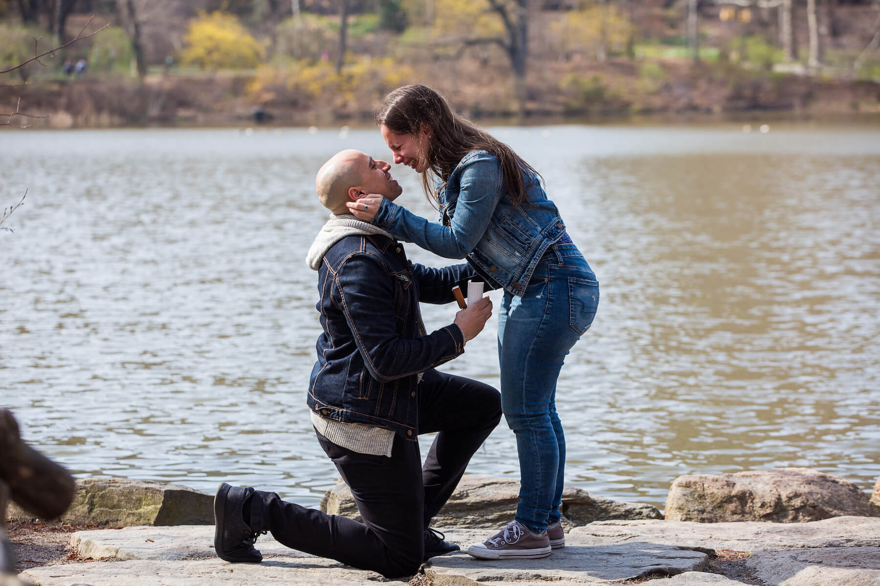 PROPOSAL MOMENT: “I chose Central Park simply because so many other ideas I had were just not available to me amidst the Coronavirus pandemic. It ended up being a beautiful location for an amazing day. Jessica and I did some walking around Central Park and eventually stopped at a lake-viewing area, overlooking the iconic San Remo building. I started to read her a letter I had written and that’s when I realized just how nervous I was. Jessica seemed to take a few seconds to realize what was happening and that’s when she burst into tears. I asked her to marry me and she said yes, even though I had opened the ring box upside down!”