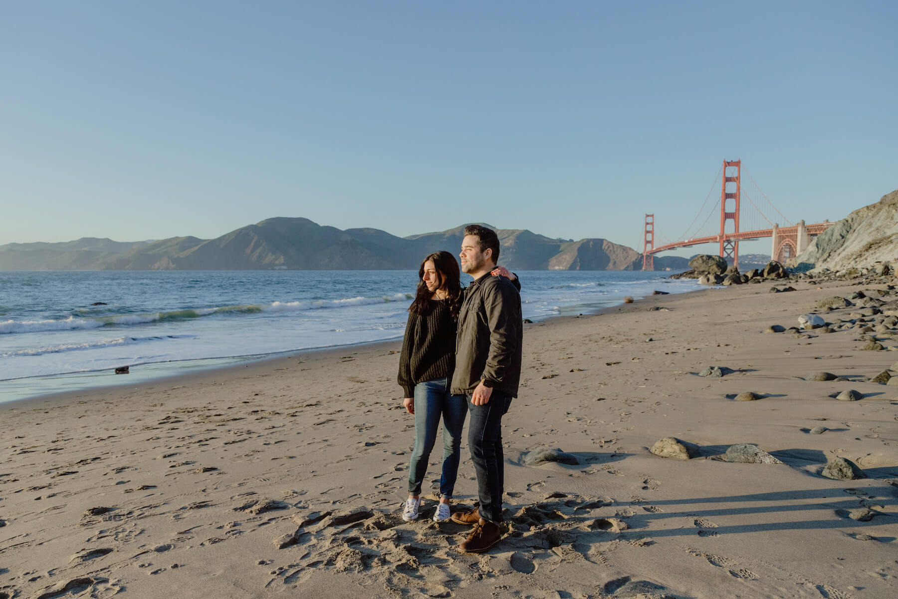 PROPOSAL MOMENT: “We’ve never been to San Francisco. I wanted to have a picture-perfect memory attached to the moment. It may seem lame and touristy for the locals, but even they have to admit that they’ll never get tired of staring at that bridge. Every time my fiancée looks at her ring she’ll be reminded of the sand, the waves, the sunset, and the bridge. That’s more than enough for me.