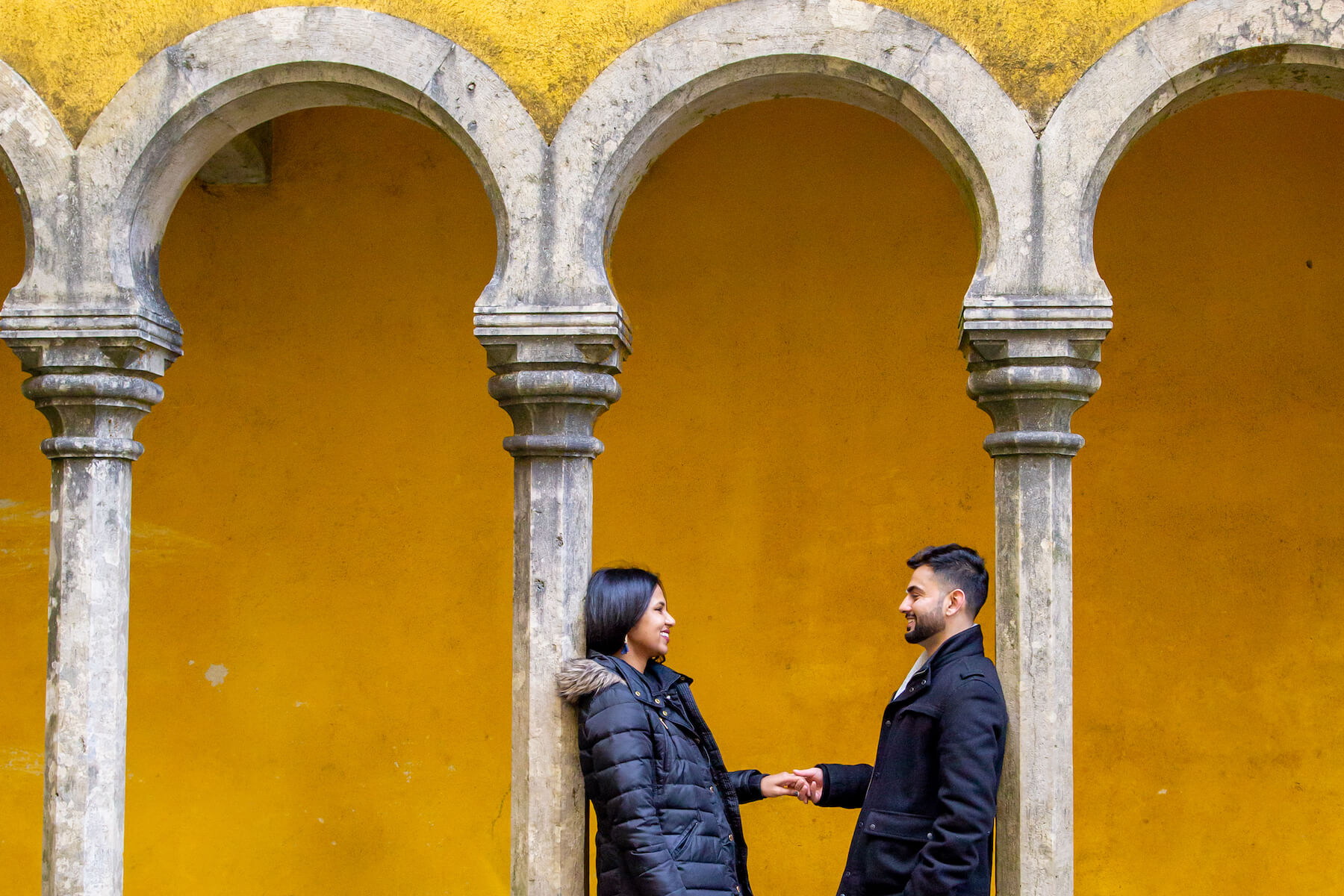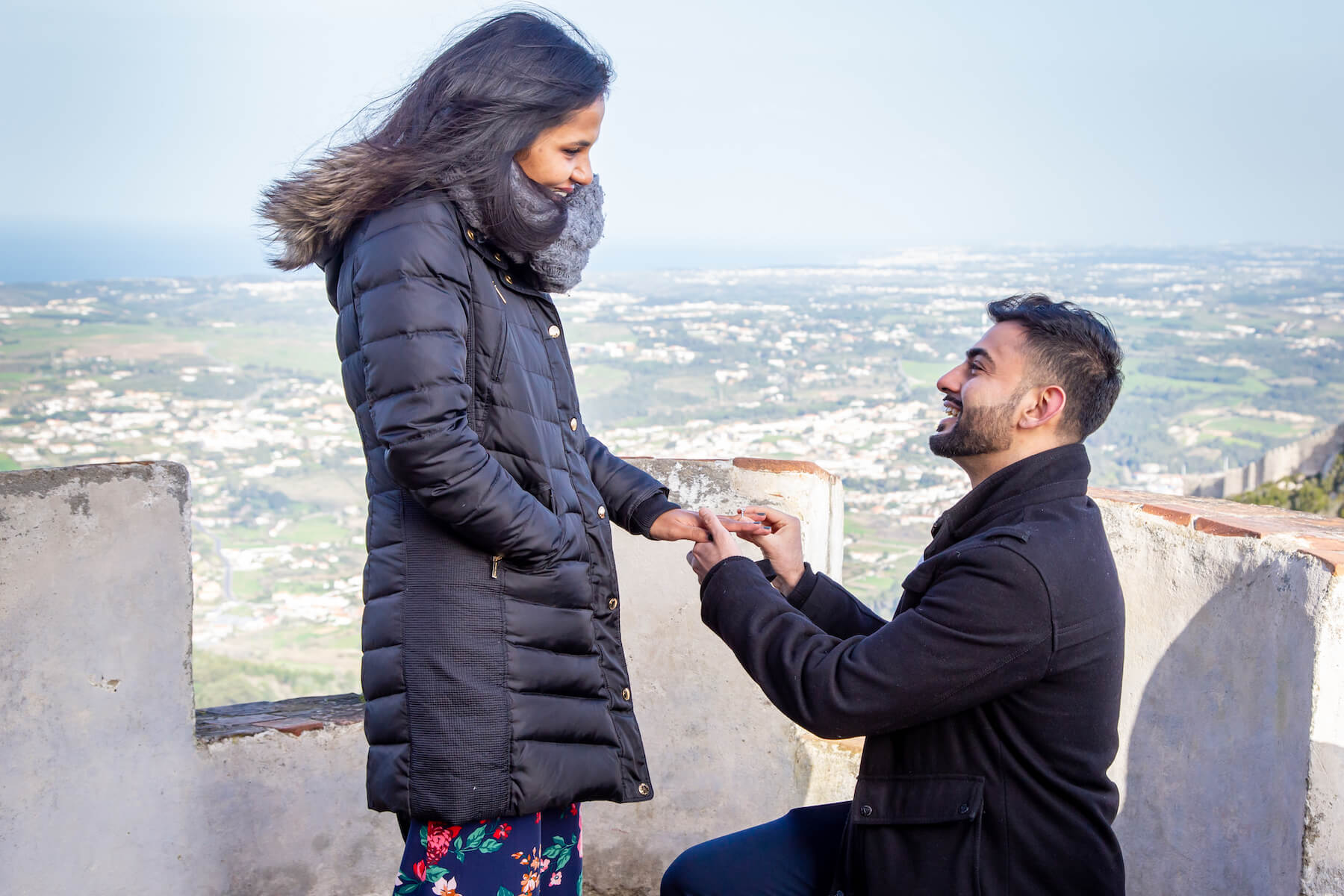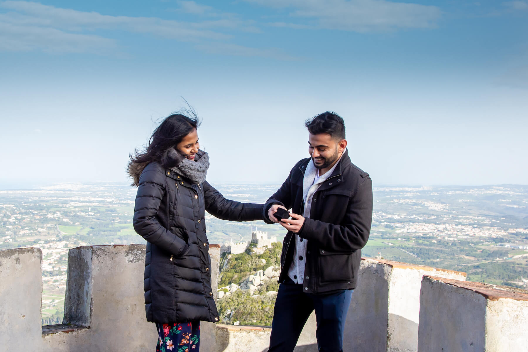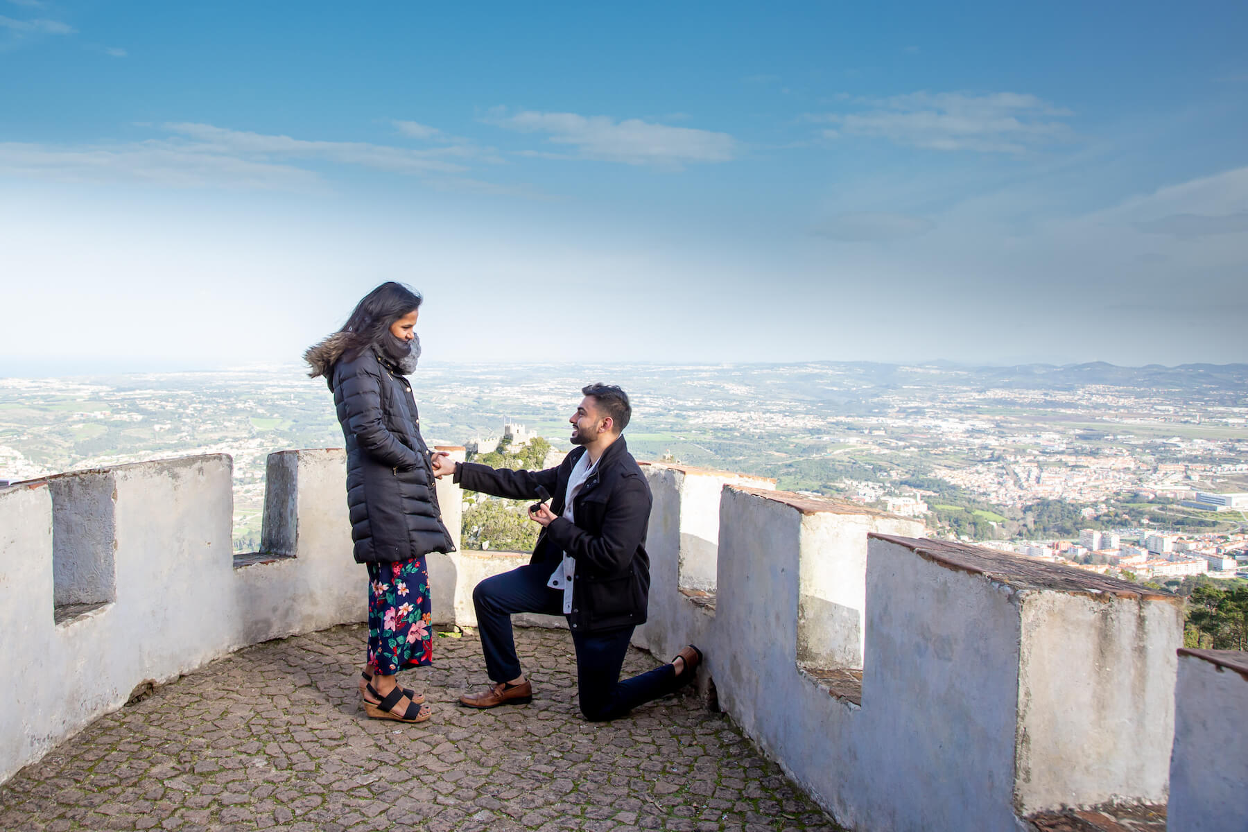 LOVE STORY: “She’s my best friend. I’ve known her since we were teenagers! We both grew up in the same town and love to travel so I knew I had to do it abroad. One of our favourite hobbies together is hiking. Pena Palace in Sintra was the perfect location to get that high view we both enjoy.”