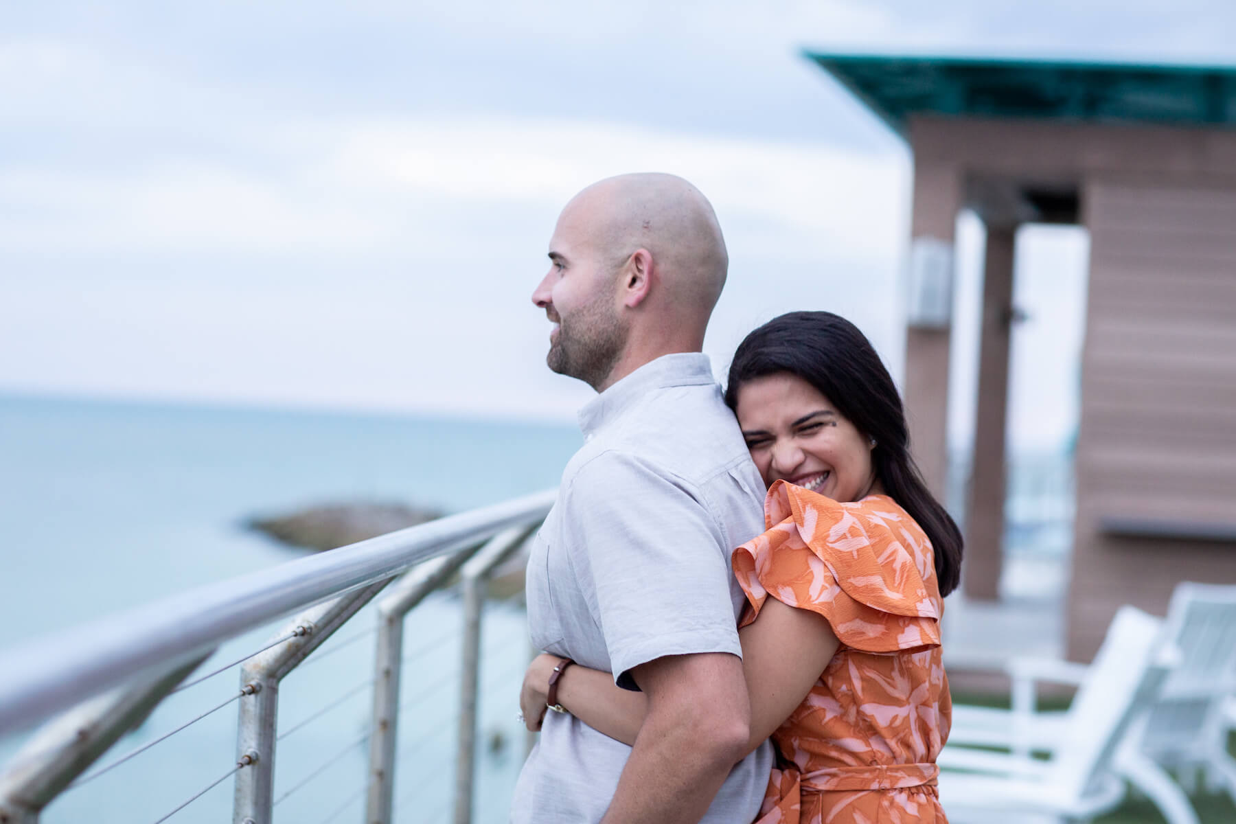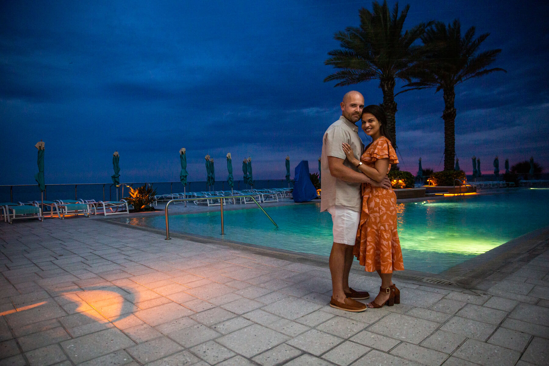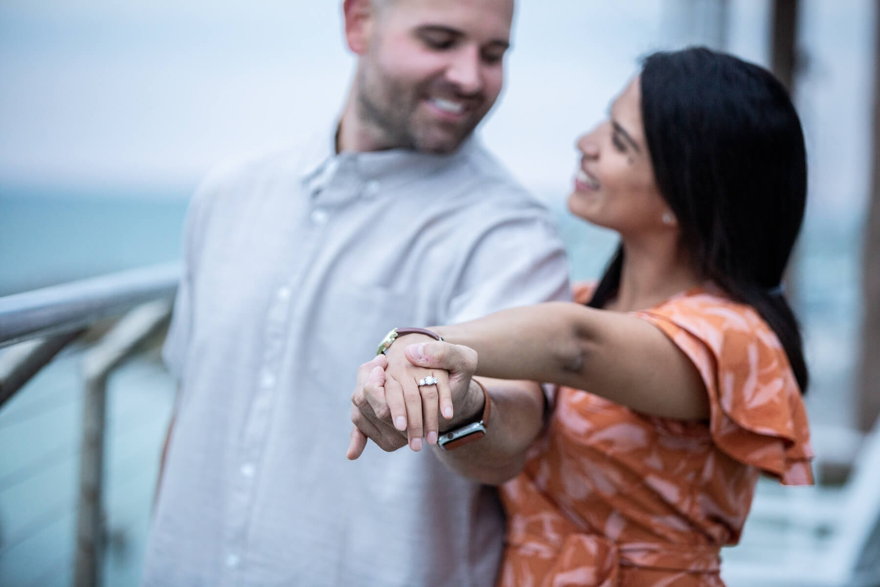 PROPOSAL MOMENT: “During the initial photo shoot, I had the ring box in my back pocket and had to manage to keep my body facing forward so that my curious fiancée wouldn’t start asking questions. I can remember a few instances when I had to grab her hand so that she wouldn’t graze the ring box just below my lower back. Once we had taken a few shots by the lifeguard stand and on the edge of the beach, Rojeena signalled to me that the lighting was perfect. As the waves receded back into the ocean, I grabbed my fiancée’s hand and told her, ‘You already know what this is.’ Immediately, she was overwhelmed with emotion. I told her how much she had already impacted my life and how much I was looking forward to advancing our relationship for years to come. Our relationship started more than 3,000 miles apart, and now just over two years later, we are officially engaged and finally in the same time zone to start our next chapter.”