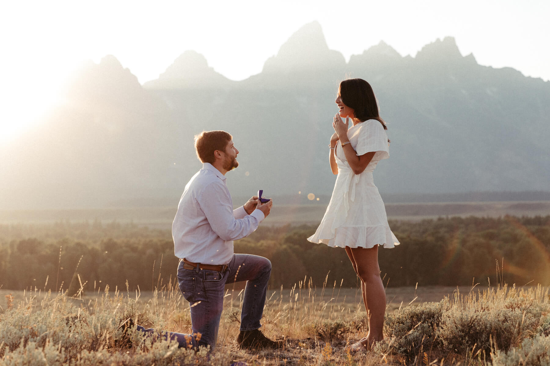 LOVE STORY: “We met through mutual friends at a lake trip. Two weeks after we met, we went on a 3-day backpacking trip on the Four Pass Loop by the Maroon Bells in Aspen. On that trip, I fell head over heels for her. I knew then I wanted to spend the rest of my life with her. I grew up going to Jackson Hole every summer or so for hiking, camping, and fishing. Since we fell in love in the mountains, I wanted to ask her to marry me in the mountains. It is the perfect balance of luxury and adventure!”