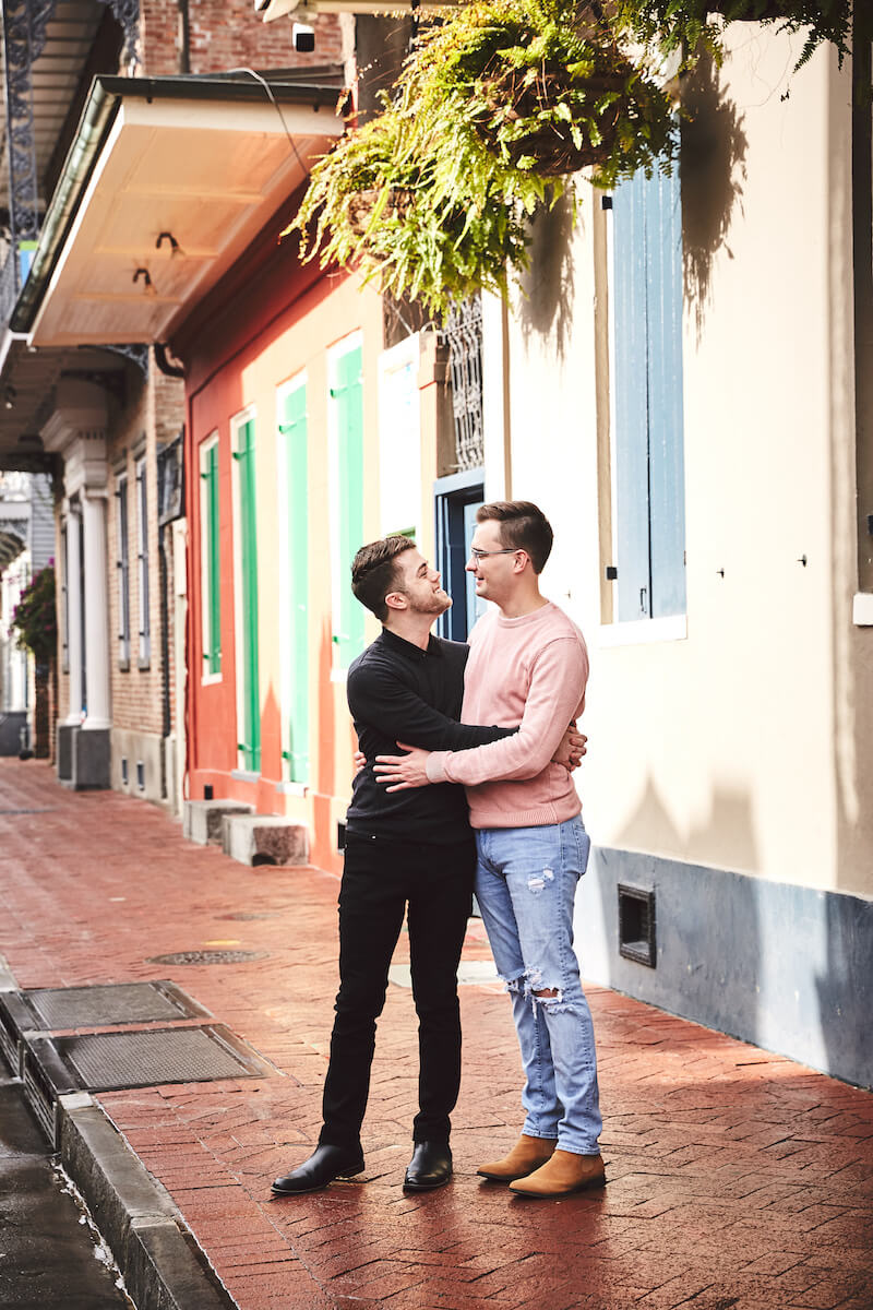 PROPOSAL MOMENT: “I got her to Greenwich Village by saying we were doing an LGBT history walking tour. Once in the park, our photographer pretended to be associated with the tour and I asked him to take a picture of us while we waited for the tour to start so he could block us out in a good spot. Immediately after, I got into position and onto one knee. I was so nervous — I think my partner and I both blacked out a little while it was happening!”