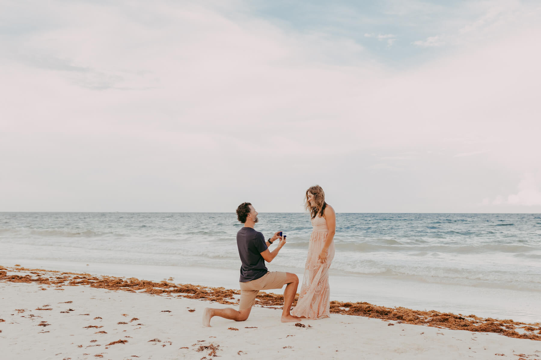 PROPOSAL MOMENT: “With Covid this year, our initial travel plans were cancelled last minute, so I was scrambling to change my plan and location to propose. We came across Tulum and fell in love so we booked a new trip. We loved Tulum’s small town, local, natural feel and the scenery was beautiful. Before we left for Tulum, I got in contact with Claudia through Flytographer and got the location, time, and details set up. As we held each other staring out into the ocean, talking about our journey and how much I loved her, I got on my knee and proposed. Covid tried to throw out my plans, but we made the best of it and it turned out perfectly! The moment was great, the pictures were great and we now have that moment captured forever.”