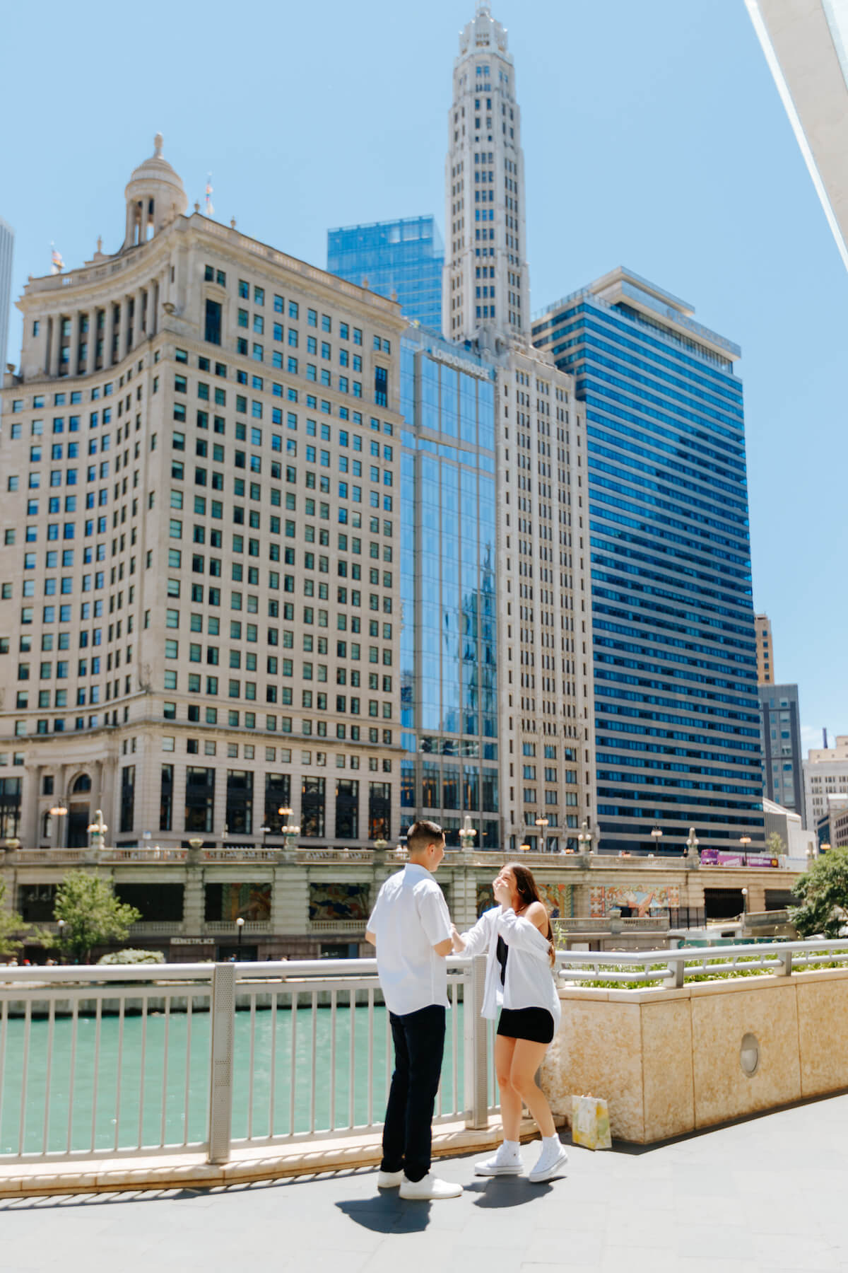Photo: Lukas in Chicago for Flytographer. Mohit and partner celebrate a proposal in Chicago with a proposal photoshoot at the Chicago Riverwalk.