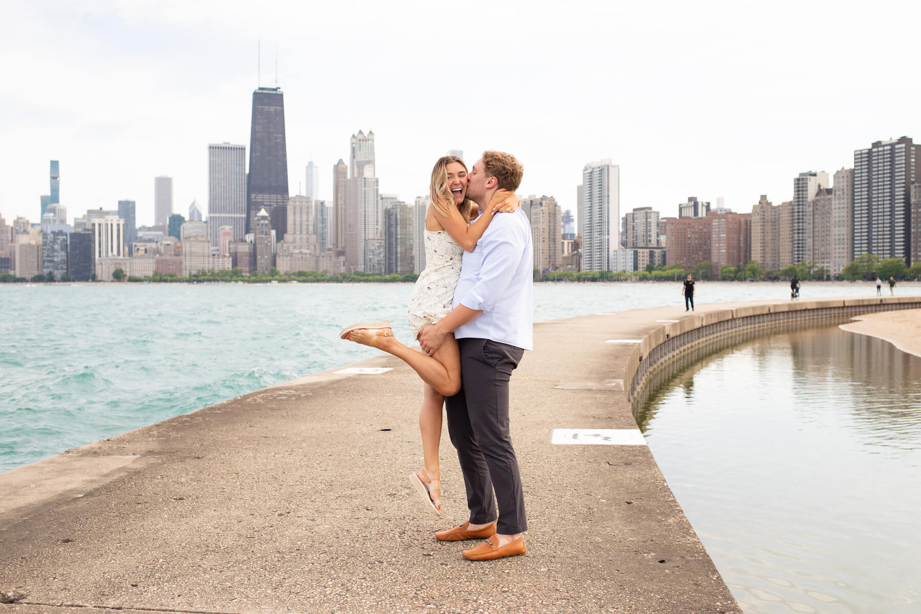 Photo: Francisco in Chicago for Flytographer. Cat and partner celebrate a proposal in Chicago with a proposal photoshoot at North Avenue Beach.
