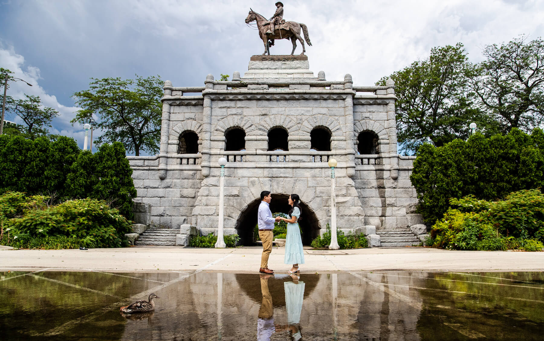 The bridge crossing Lincoln Zoo’s South Pond is popular for wedding portraits, and it’s easy to see why. The sweeping view of Chicago’s skyline is one of the city’s best. The soaring architecture contrasts with the park’s natural beauty, perfectly encapsulating Chicago’s motto: City in a Garden. 🌳