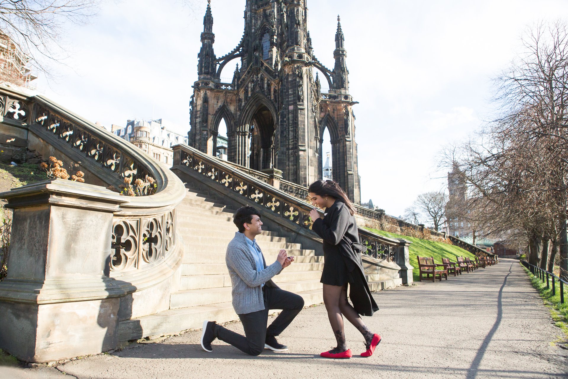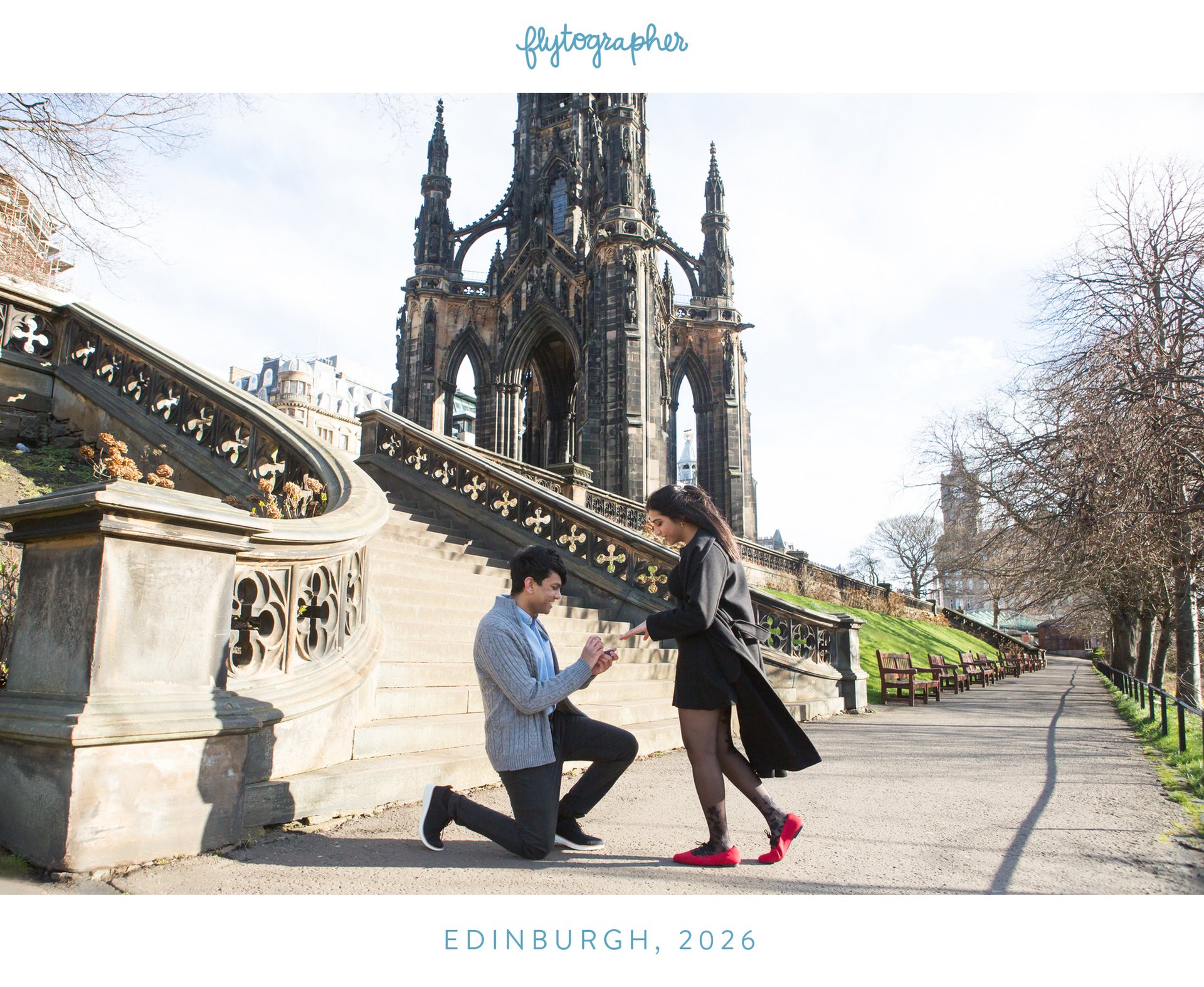 Choose one of our world-class photographers to capture your memories in Princes Street Gardens, Edinburgh. Vacation packages start at $325. Proposal packages start at $425.