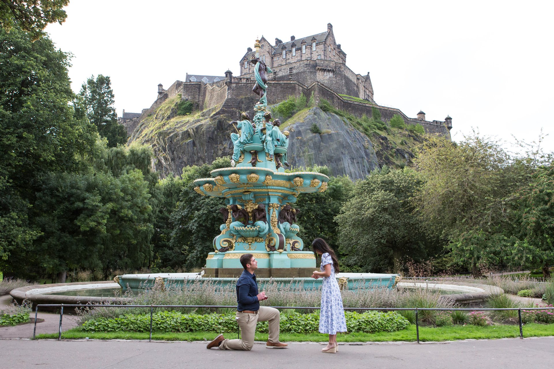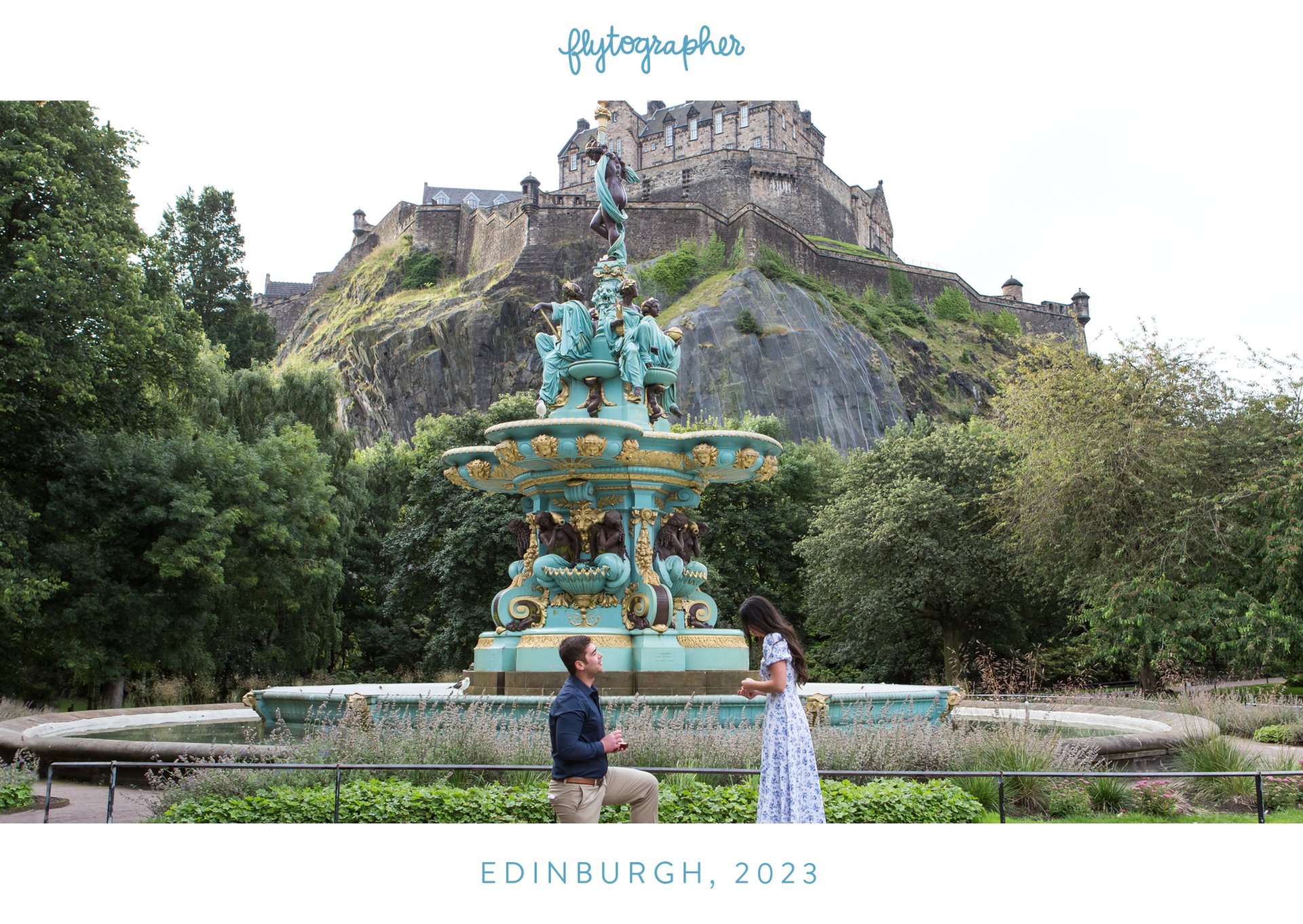 Choose one of our world-class photographers to capture your memories in Princes Street Gardens, Edinburgh. Vacation packages start at $325. Proposal packages start at $425.