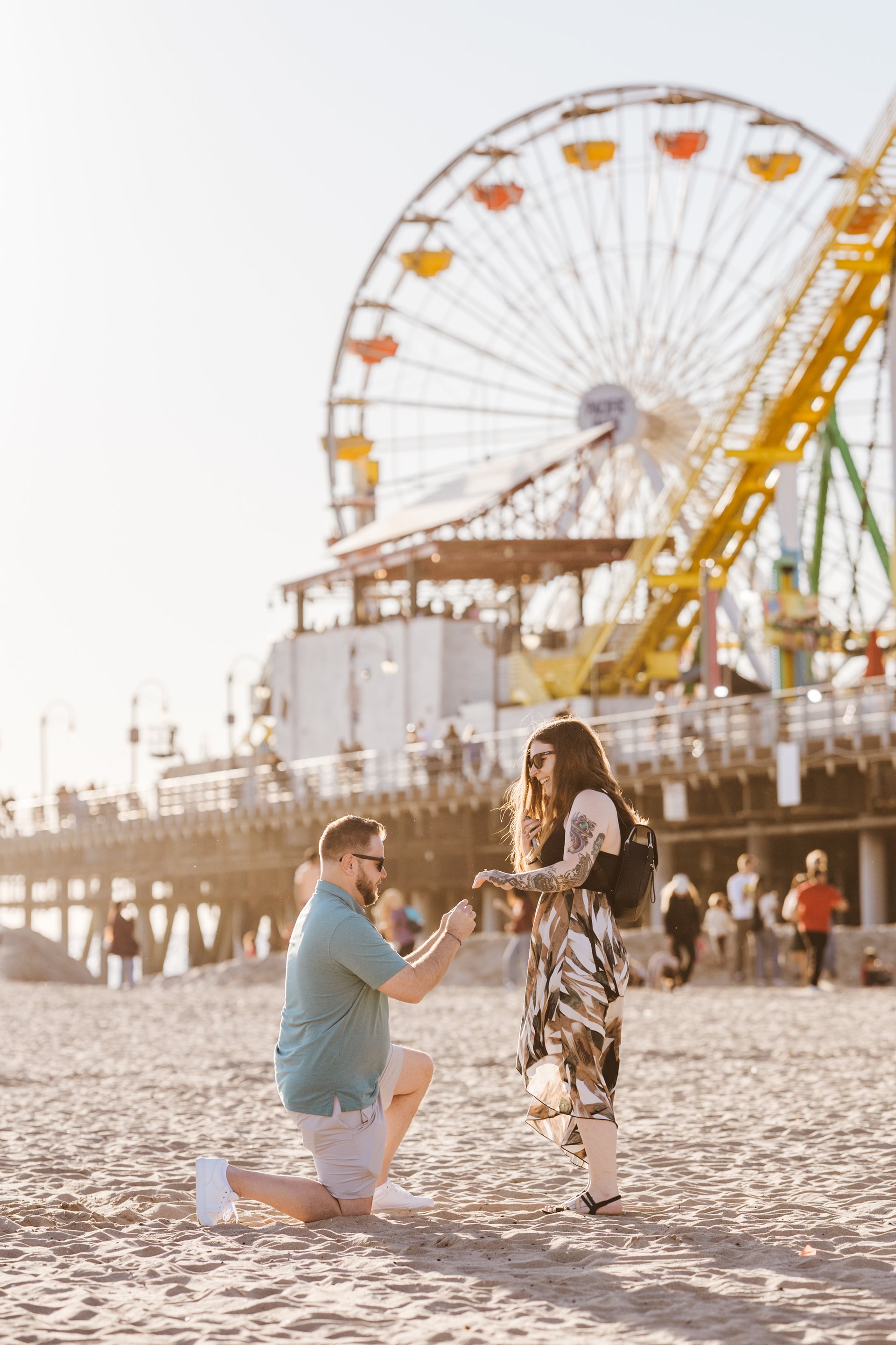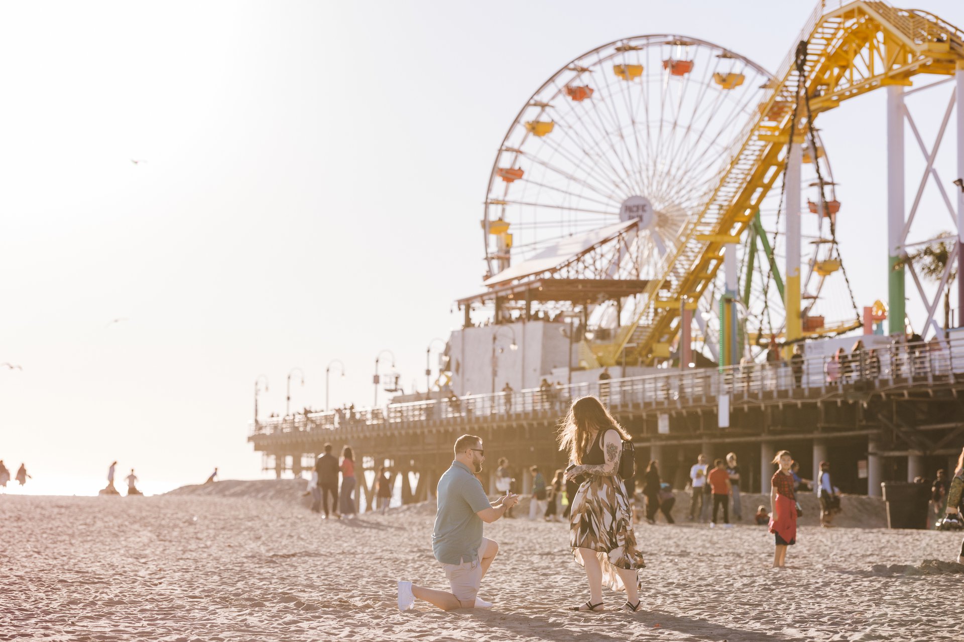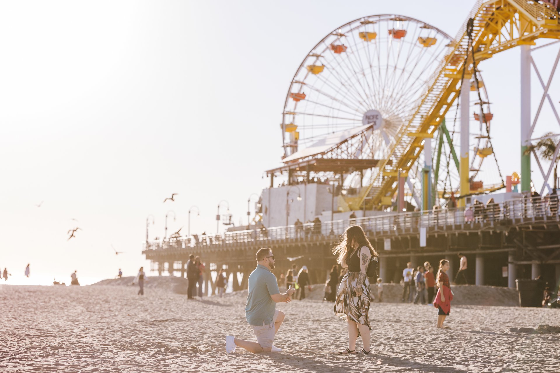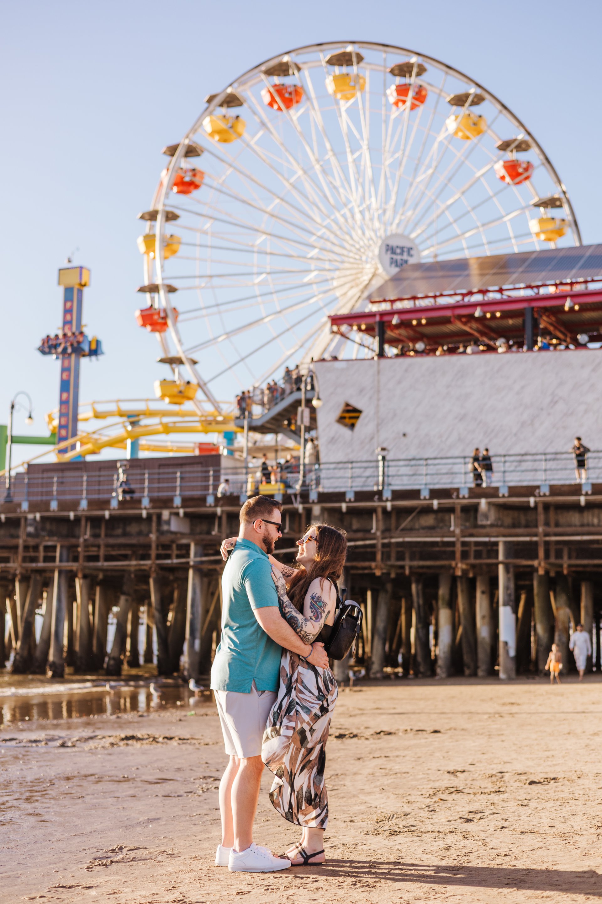 Choose one of our world-class photographers to capture your memories in Santa Monica Pier & Beach, Los Angeles. Vacation packages start at $425. Proposal packages start at $525.