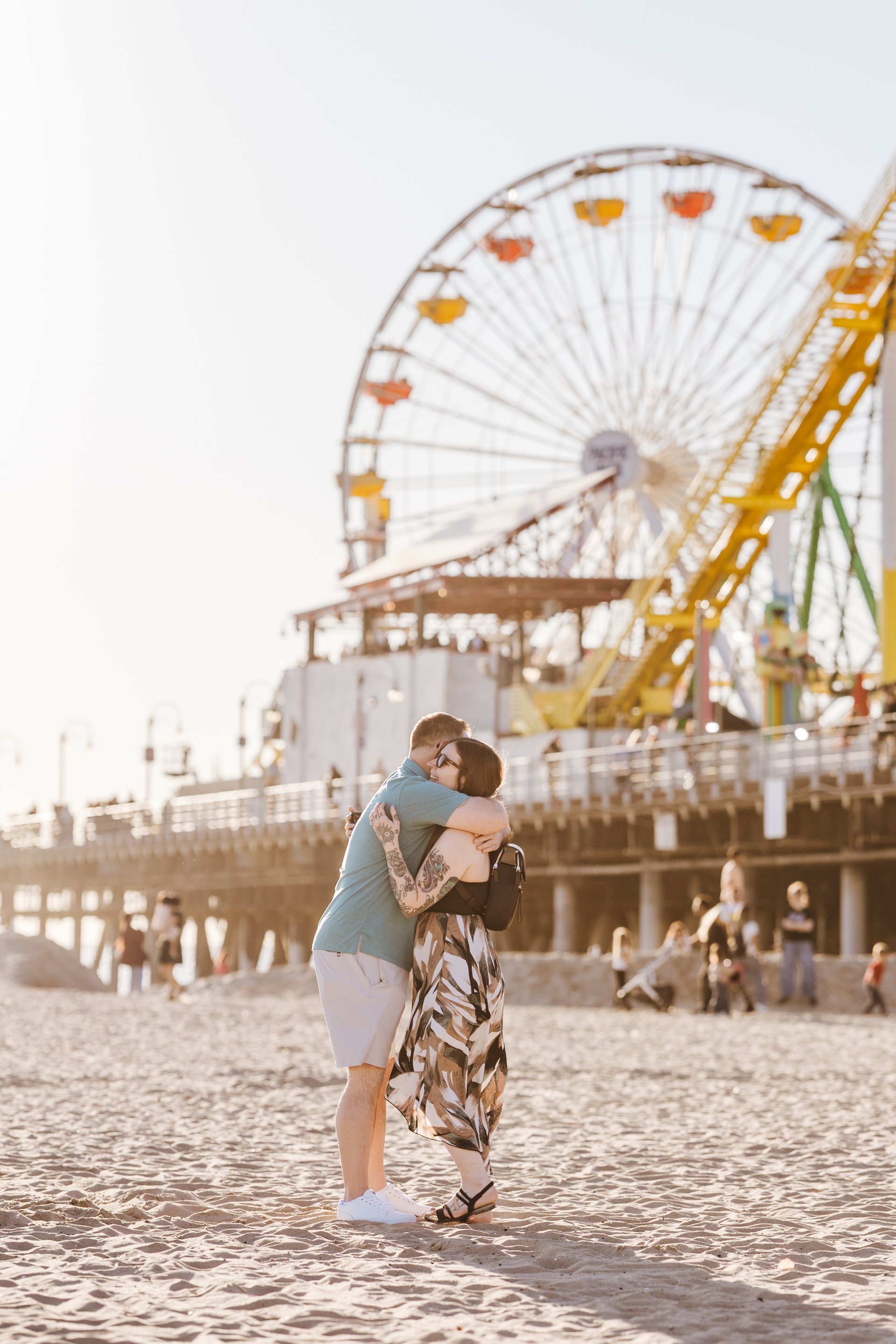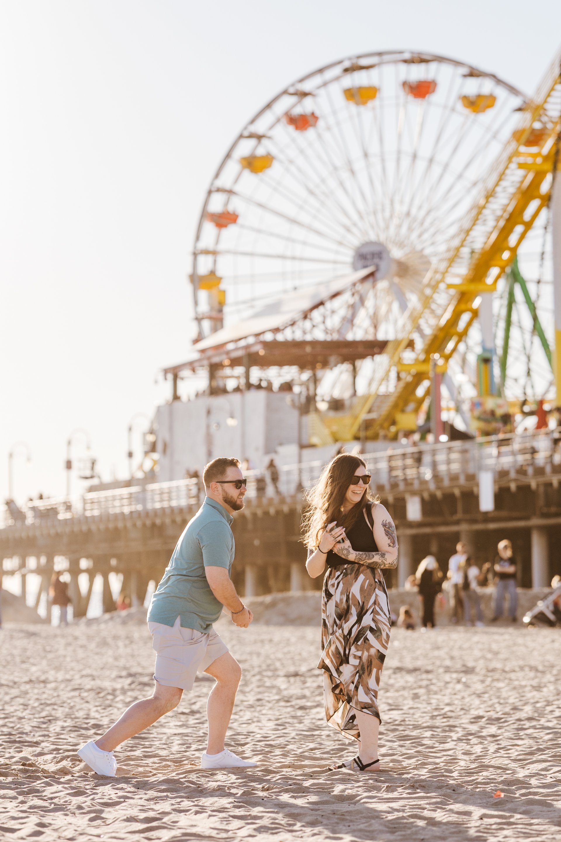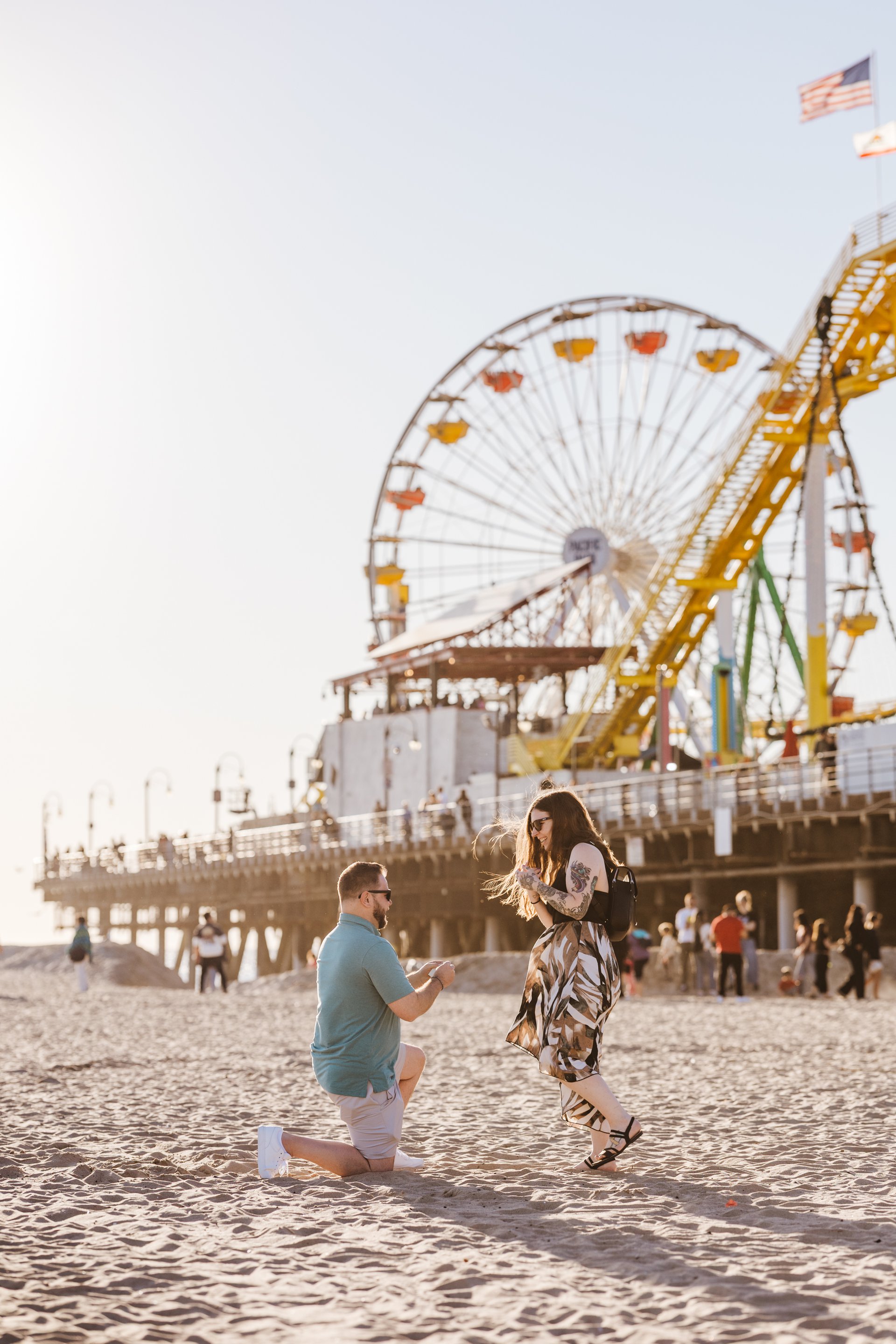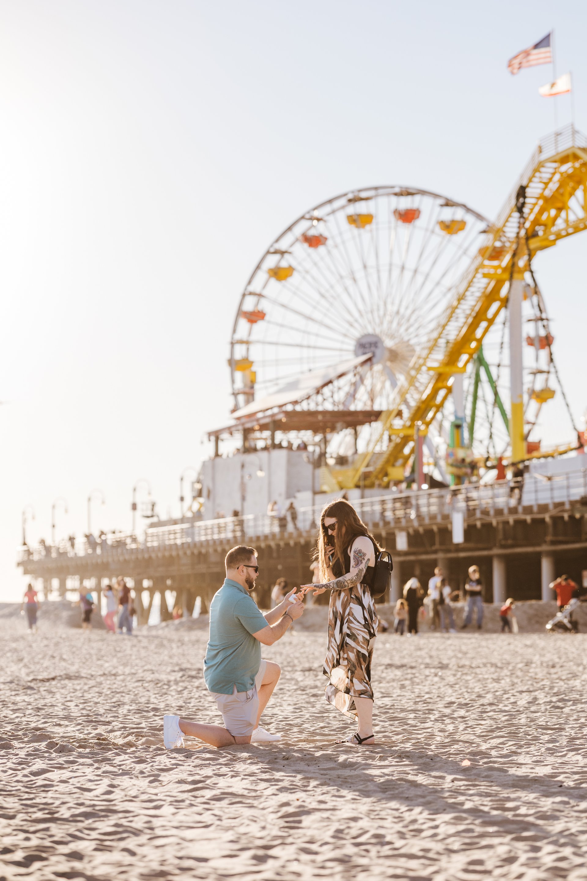 Choose one of our world-class photographers to capture your memories in Santa Monica Pier & Beach, Los Angeles. Vacation packages start at $425. Proposal packages start at $525.